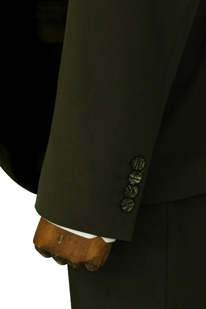 Traje de hombre verde de tres piezas, corte entallado y un solo botón