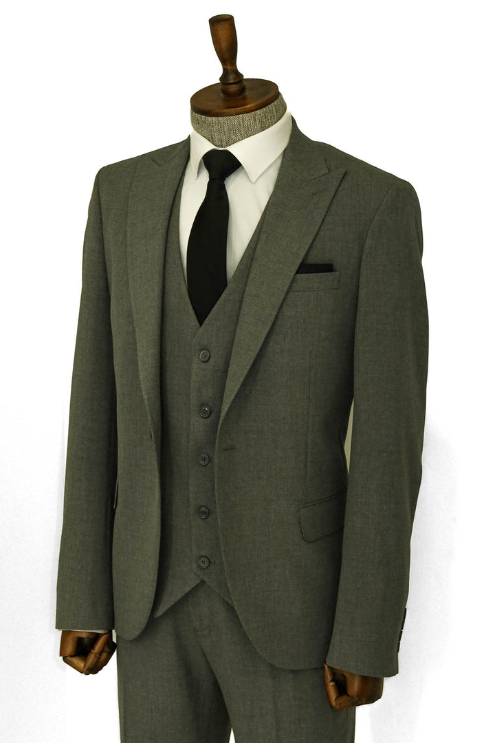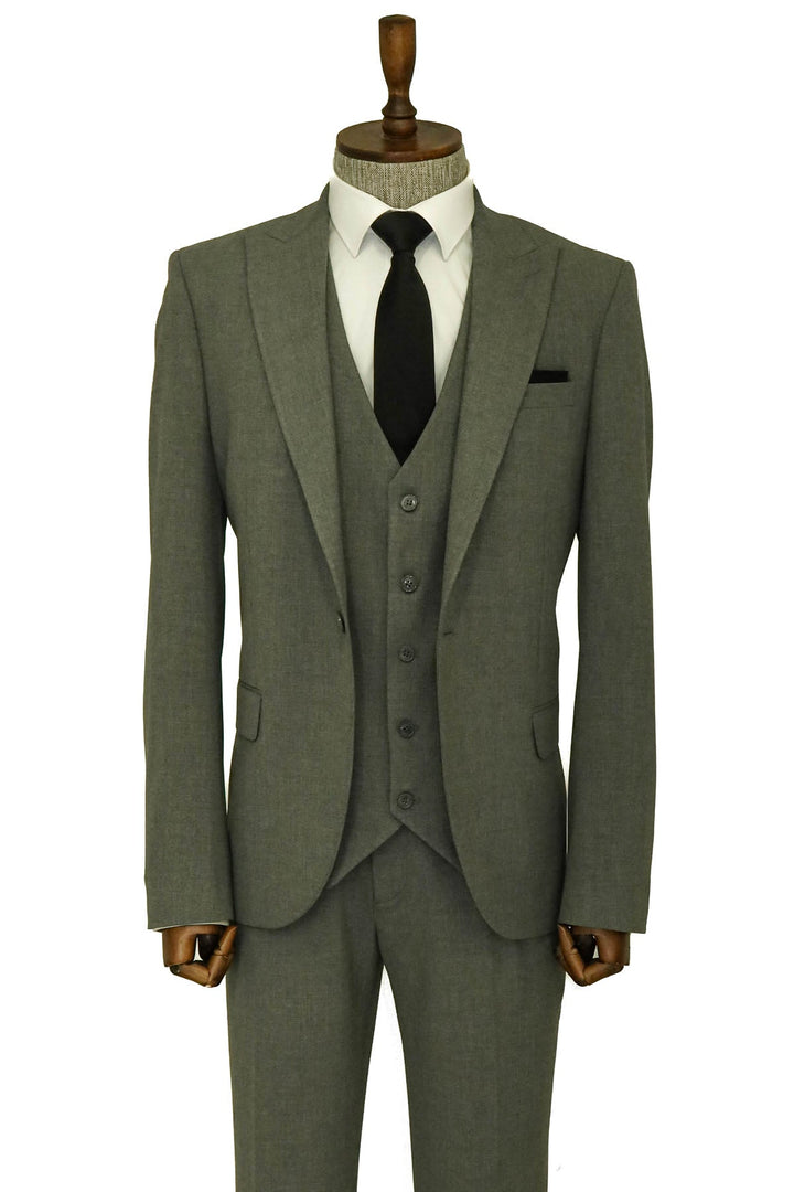 Traje de tres piezas ajustado de un solo botón para hombre, color gris