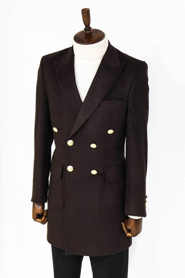Este abrigo largo cruzado en marrón de Wessi presenta detalles de botones de metal que le aportan un toque de sofisticación al diseño. Fabricado con materiales de alta calidad, este abrigo es elegante y duradero. La elección perfecta para un look elegante y profesional.
