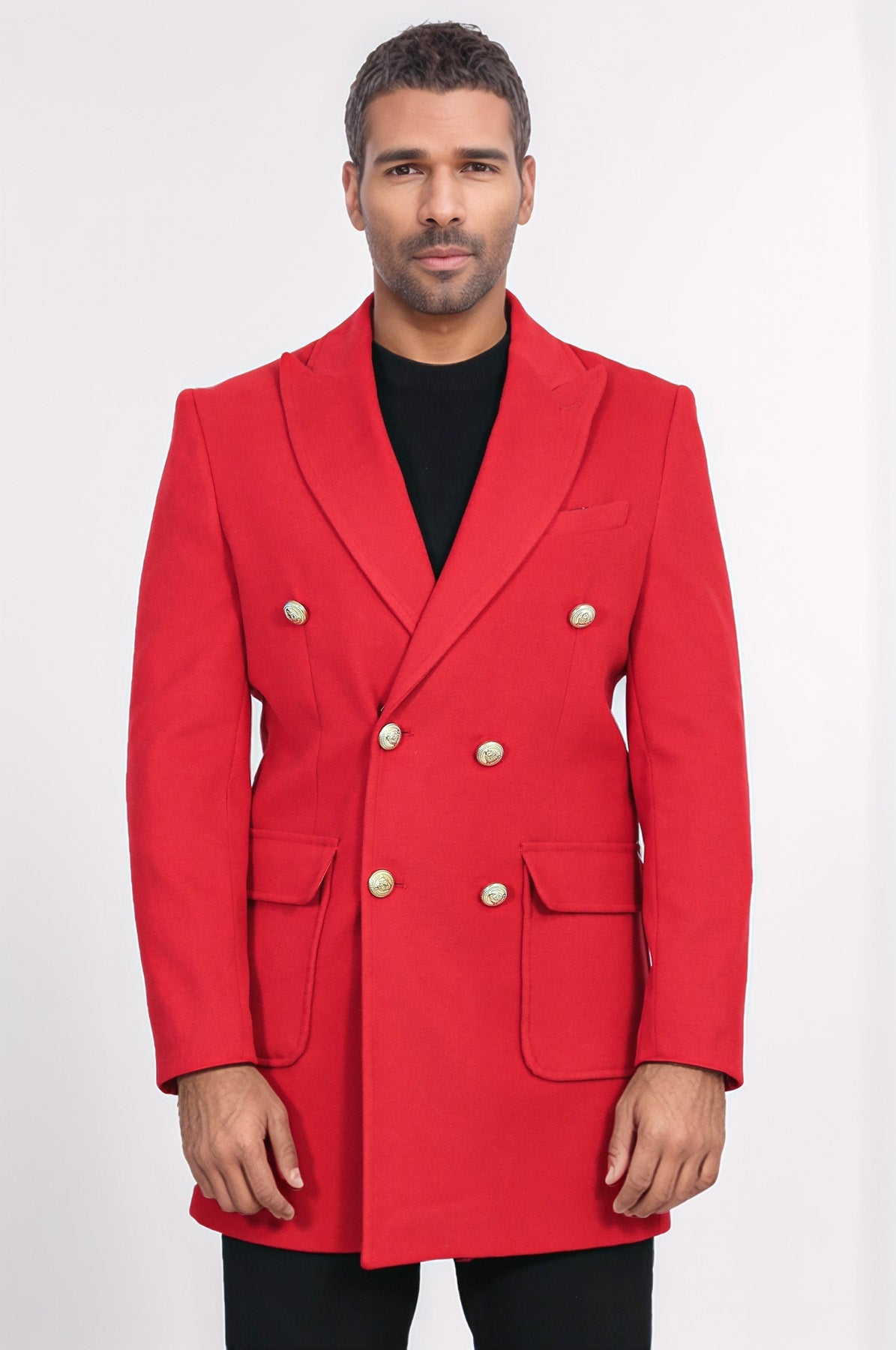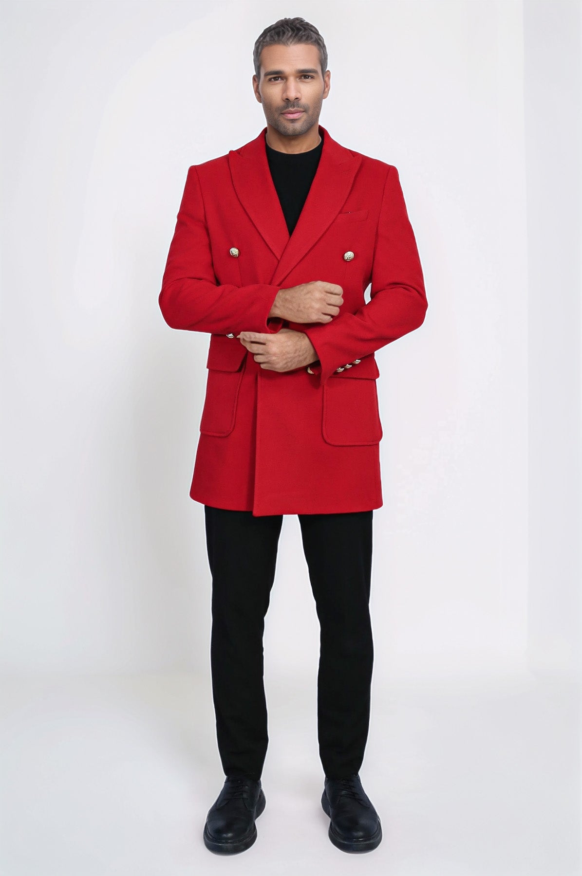 Abrigo cruzado con botones metálicos en color burdeos para hombre - Wessi