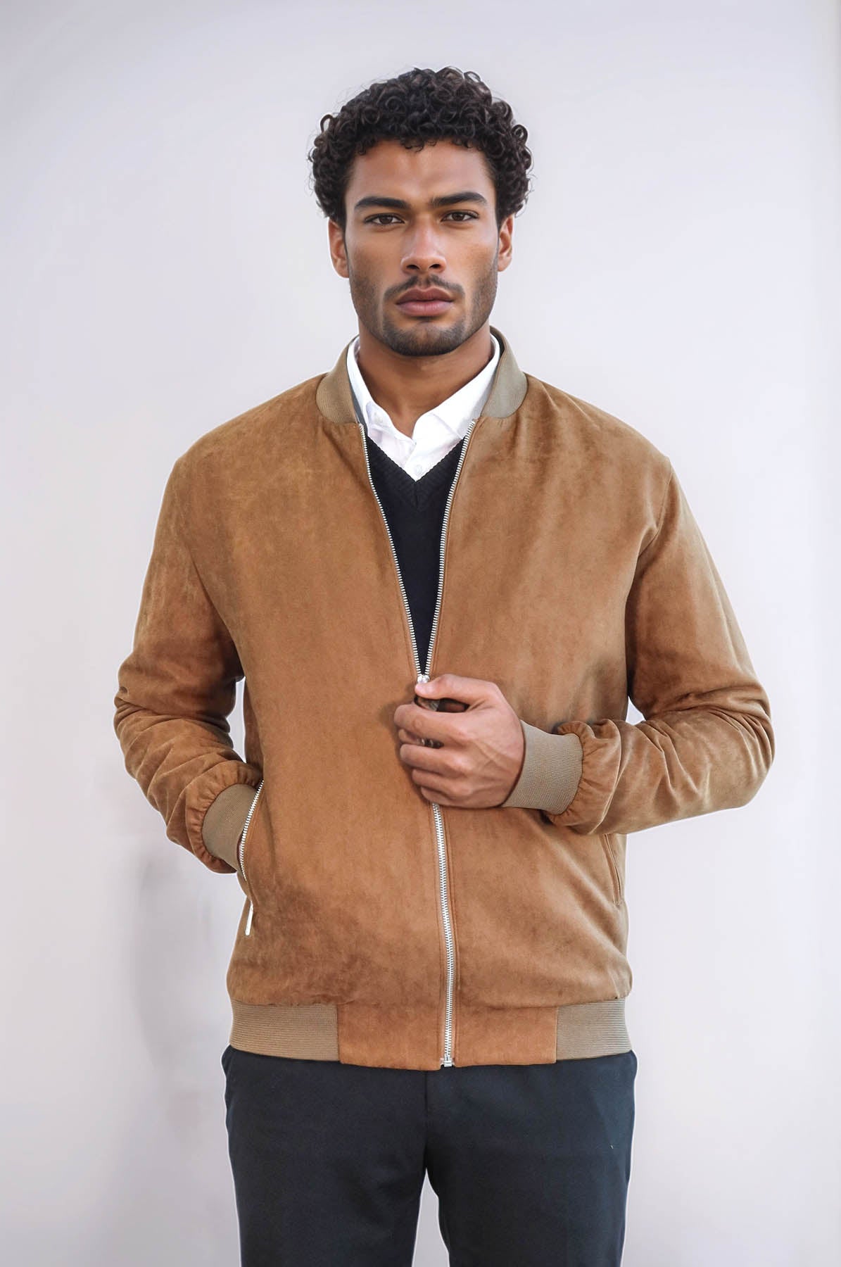 Cazadora bomber de color tostado con bolsillos y cremallera para hombre - Wessi