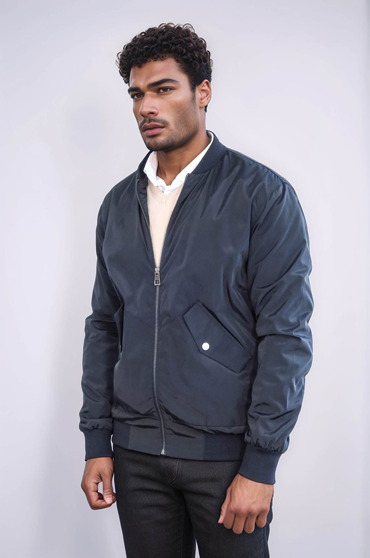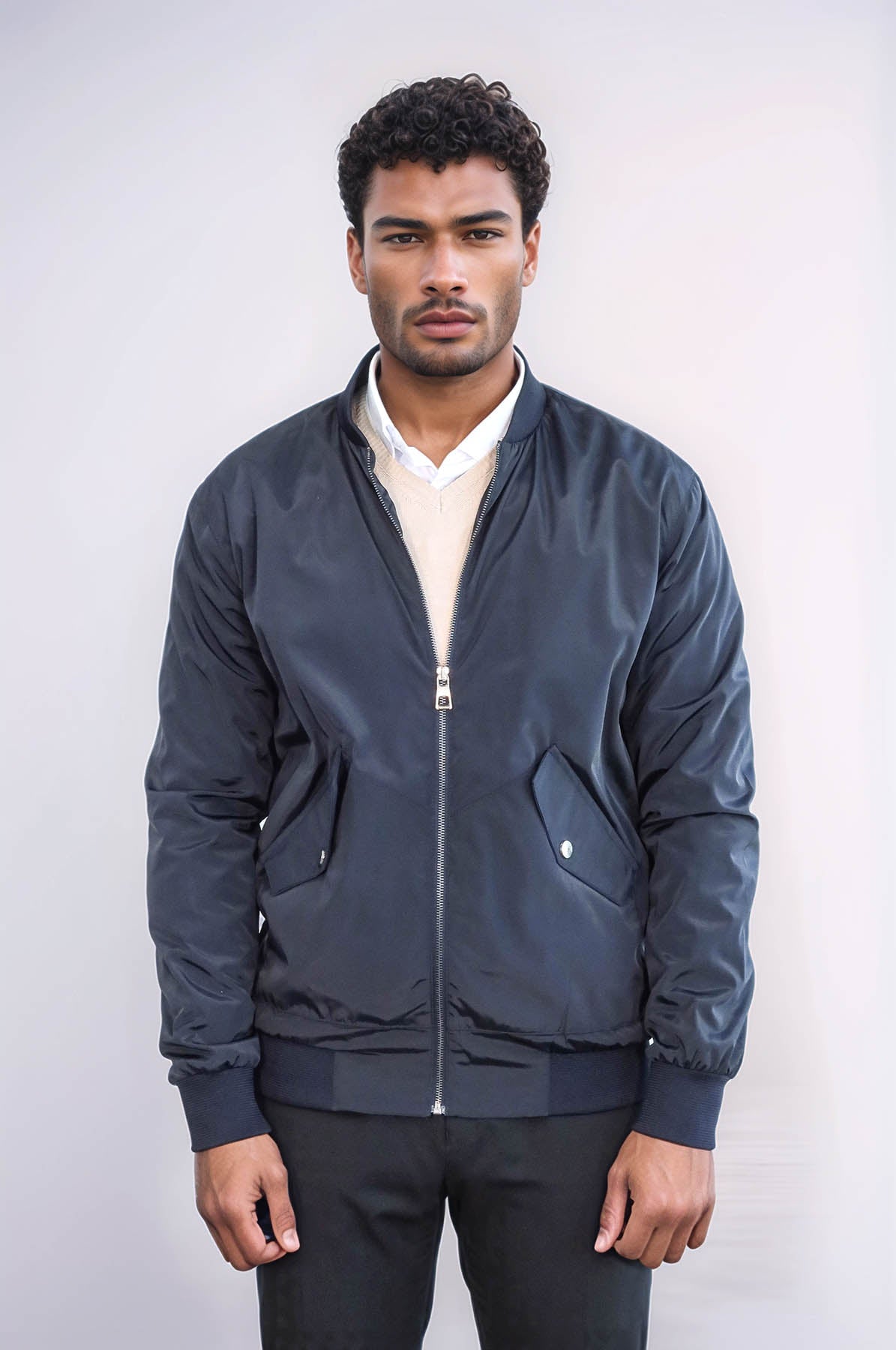 Chaqueta bomber azul marino con bolsillos con solapa y cremallera para hombre - Wessi
