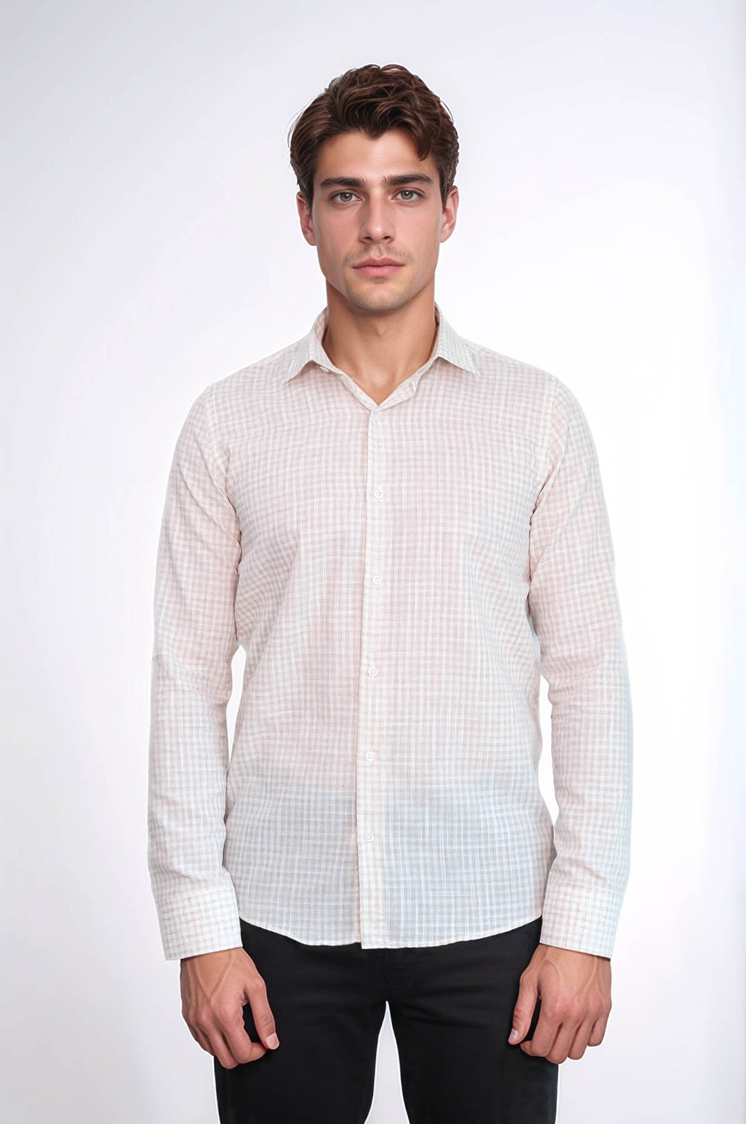 Camisa de cuadros entallada de color marrón claro para hombre - Wessi