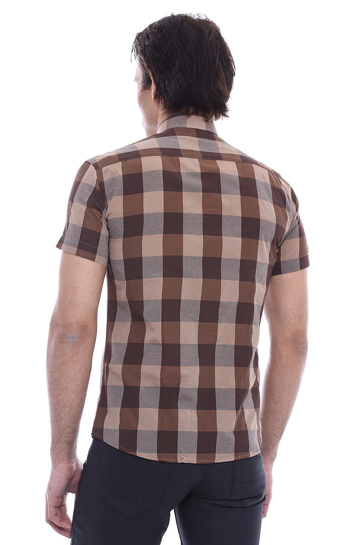 Checked Short Sleeve Brown Men Shirt - Wessi