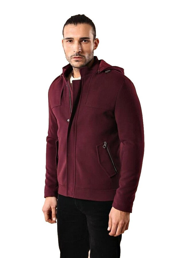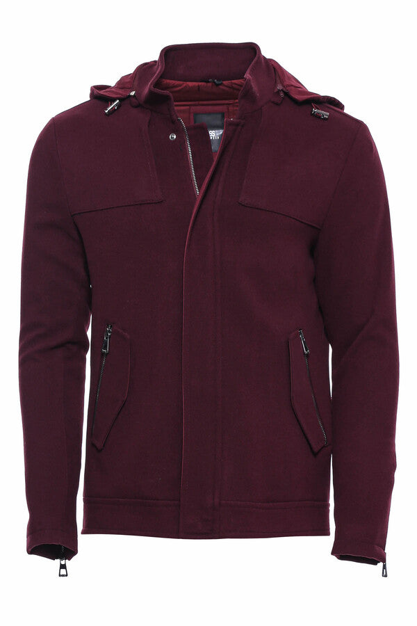 Abrigo burdeos con capucha y mangas con cremallera - Wessi