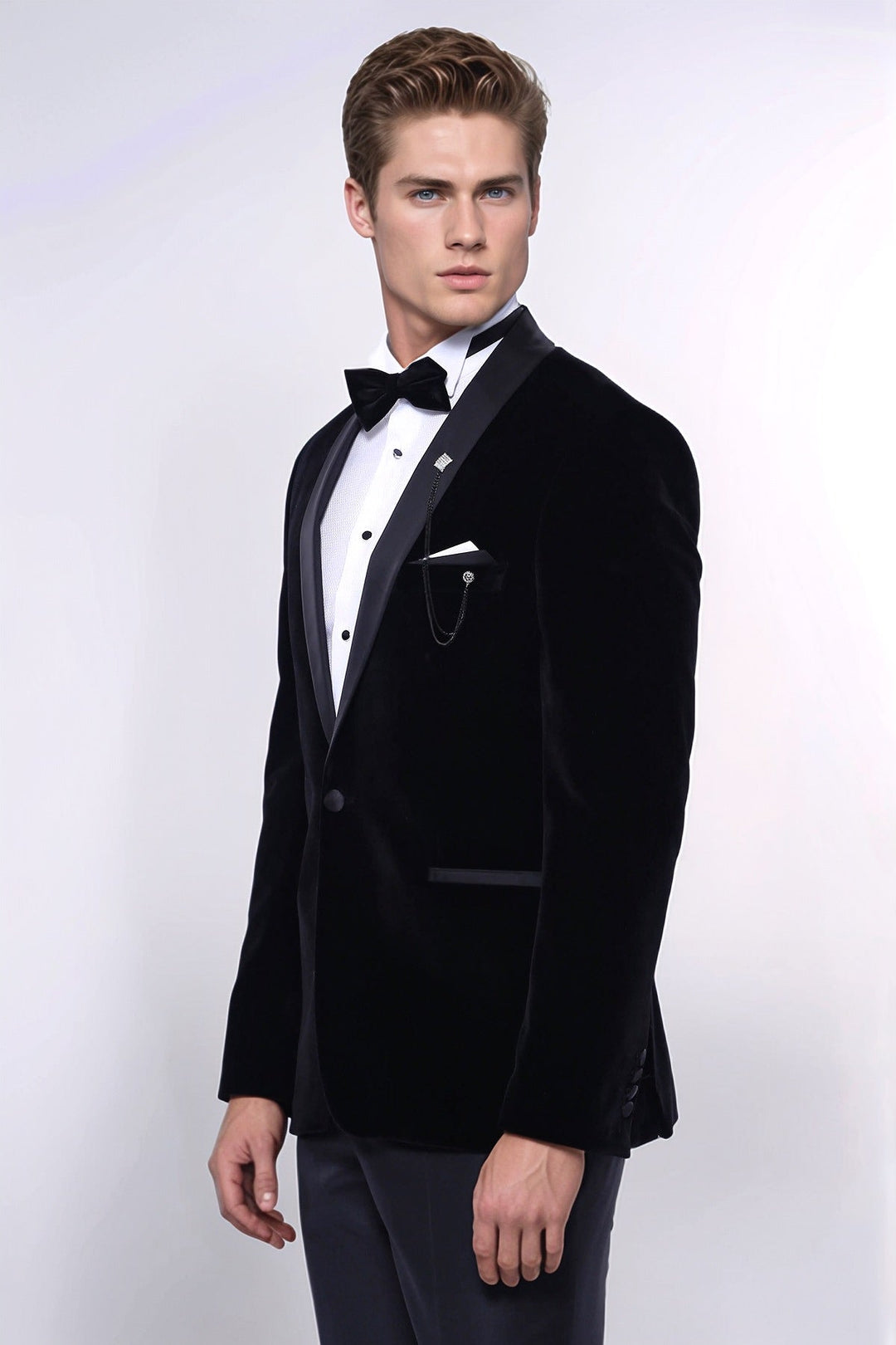 A la hora de hacer combinaciones, cada detalle debe tener importancia, desde los accesorios hasta la armonía del pantalón. La elegancia se puede buscar incluso en los detalles más pequeños para una combinación con estilo, especialmente en ocasiones significativas y especiales. Puedes completar tus combinaciones más elegantes en tus días más especiales con este modelo de chaqueta lisa de terciopelo negro. Puedes utilizar el estilo noble y elegante del negro para complementar tu elegancia. Puedes ser la invitada más estilosa de tus días más especiales con un modelo de cuello chal, pajarita negra, pantalones en los mismos colores, una elegante camisa y zapatos de charol negro brillante. Puedes encontrar todos los accesorios y piezas de combinación que respaldarán tu estilo en tus combinaciones en nuestro sitio web. Con los soportes de combinación adecuados, puedes tener los diseños más elegantes de conceptos elegantes, y puedes completar tu estilo de una manera más agradable con oportunidades de compra asequibles.