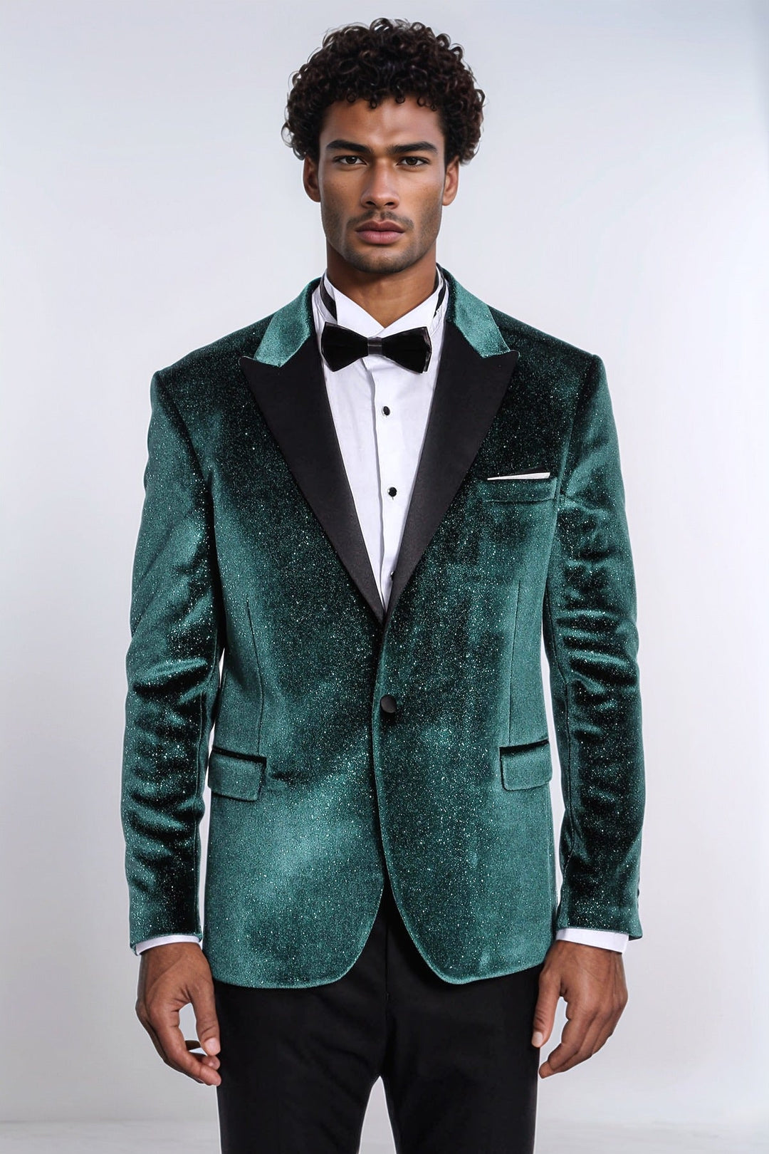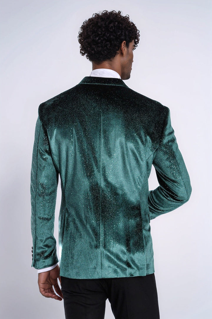 Blazer de fiesta de terciopelo verde ajustado y brillante para hombre - Wessi