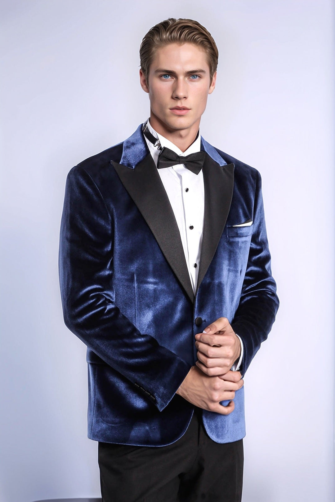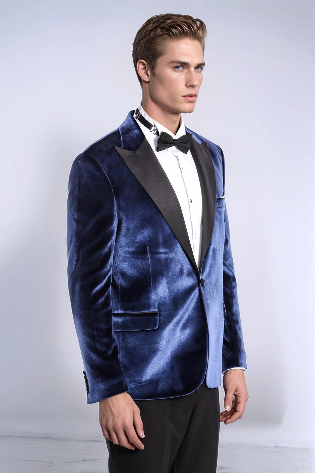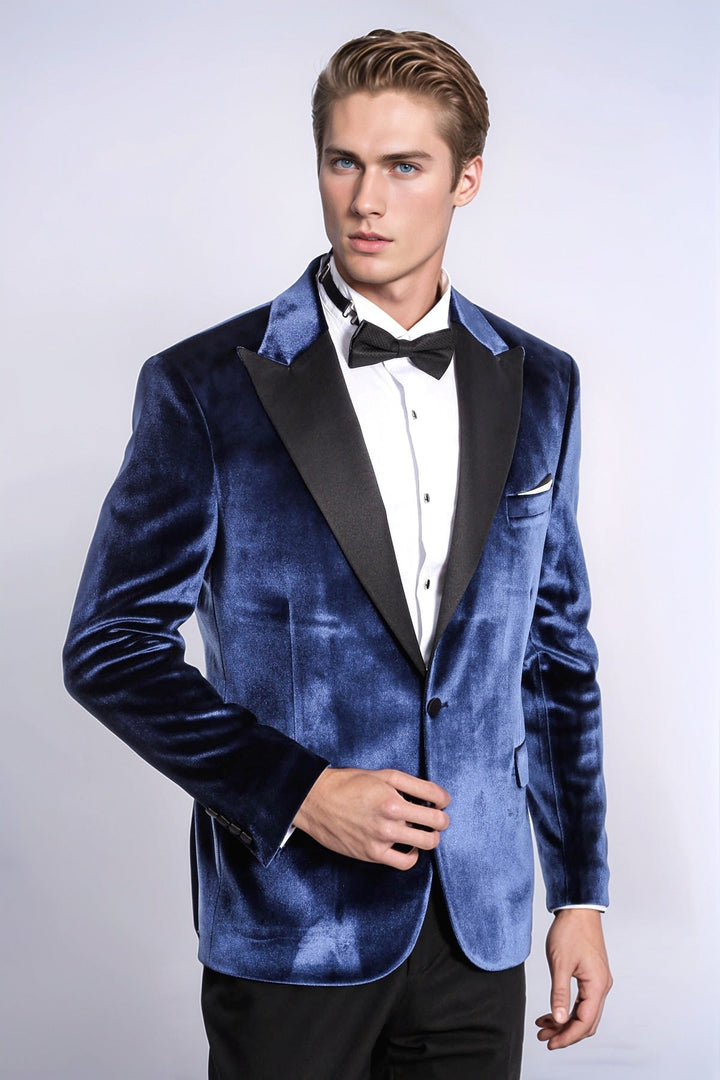 Blazer de terciopelo azul ajustado para hombre para fiesta de graduación - Wessi