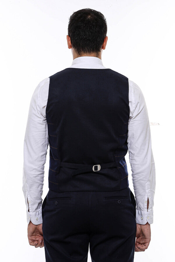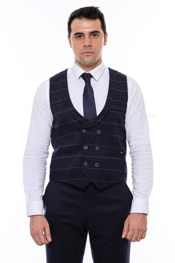 Chaleco azul marino con cuello cruzado y cuadros para hombre - Wessi