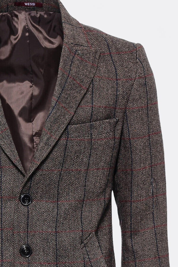 Abrigo ajustado de rayas burdeos y marrón marino - Wessi