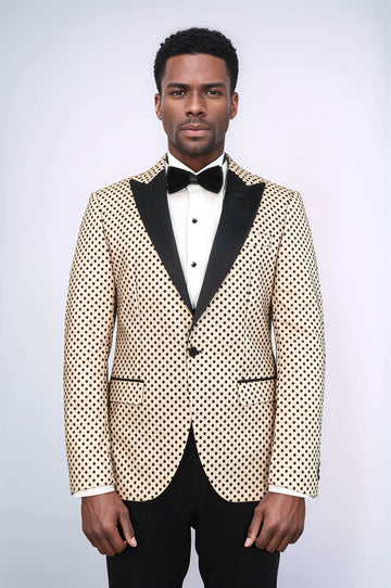 Blazer de fiesta para hombre en color crema con estampado de lunares y lentejuelas - Wessi