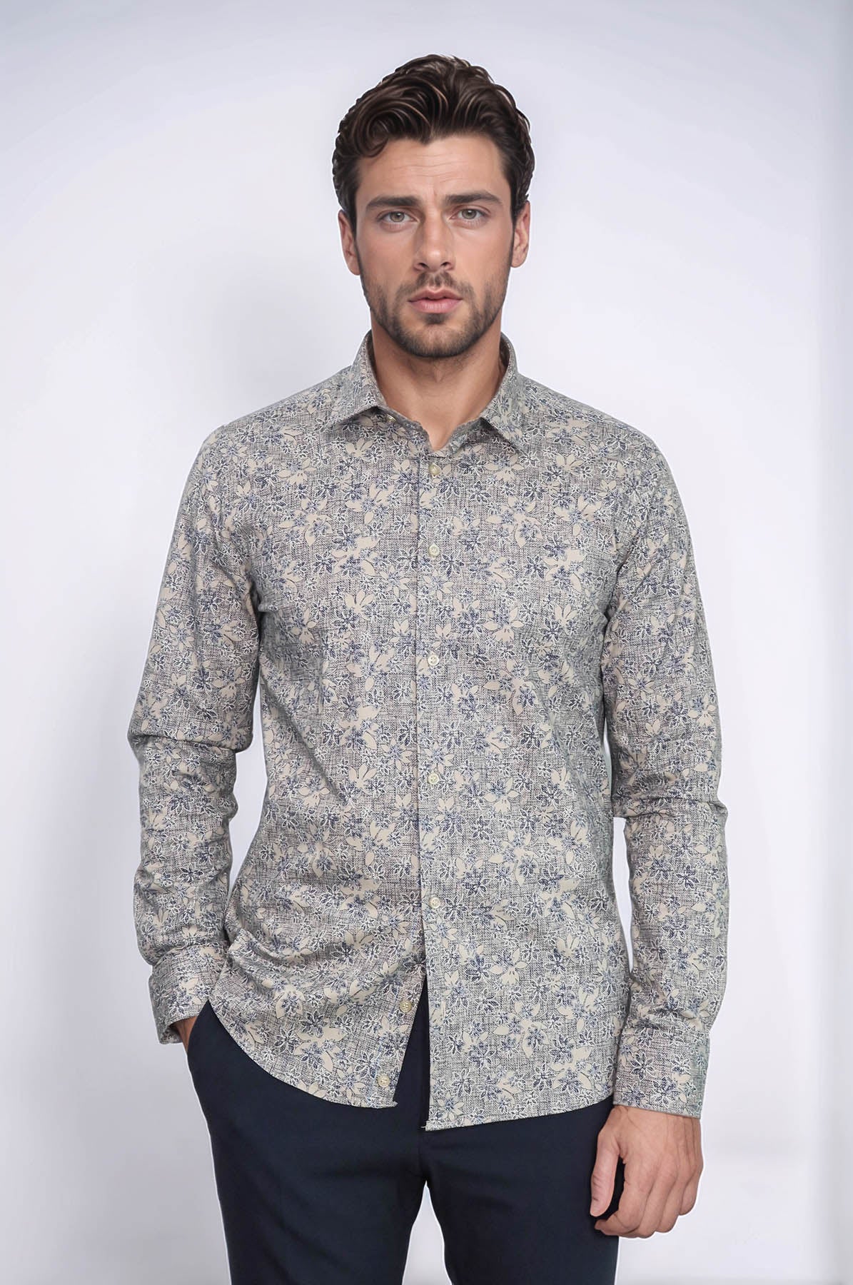 Bloom Patterned Beige Slim Fit Shirt - Wessi
