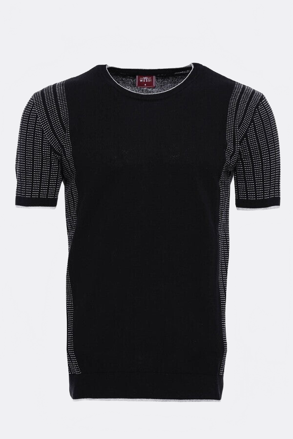 Circle Neck Patterned Black Knitted T-Shirt - Wessi