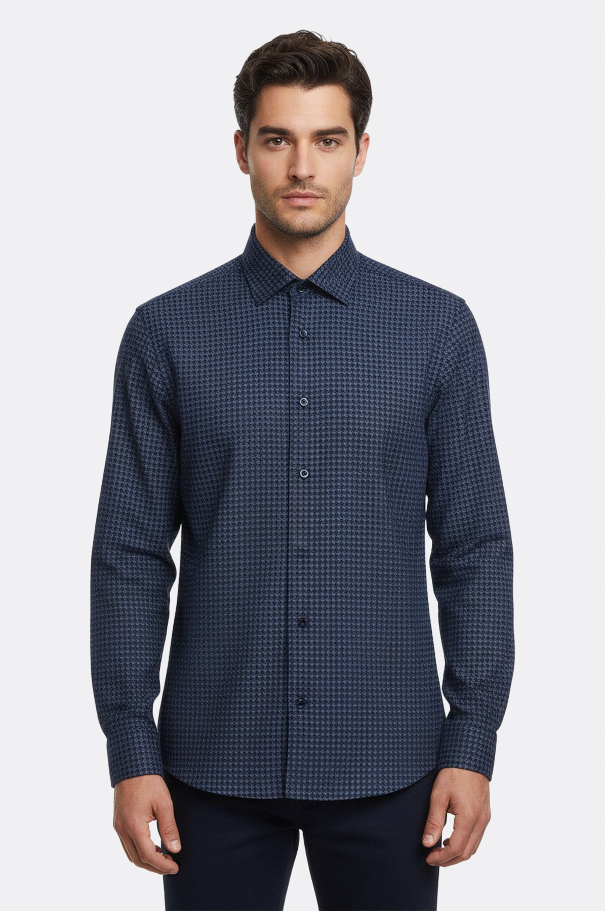 We are pleased to introduce this shirt, which will become the new staple of your wardrobe. This shirt offers the perfect combination of elegance and comfort. The slim-fit cut ensures a perfect fit and the long sleeve design offers wearability in all seasons. The light blue color is a symbol of simplicity and elegance, while the damask patterned texture sets your shirt apart from others. This shirt is an ideal choice for work, special occasions or to complete your everyday look. You can create a great workplace outfit with this shirt. Pair it with dark slim fit trousers for a professional and elegant look. You can complete the outfit with black leather oxford shoes and a thin black tie. This outfit is perfect for any workplace occasion, from business meetings to special events. Top it off with an elegant wristwatch to complete the look.