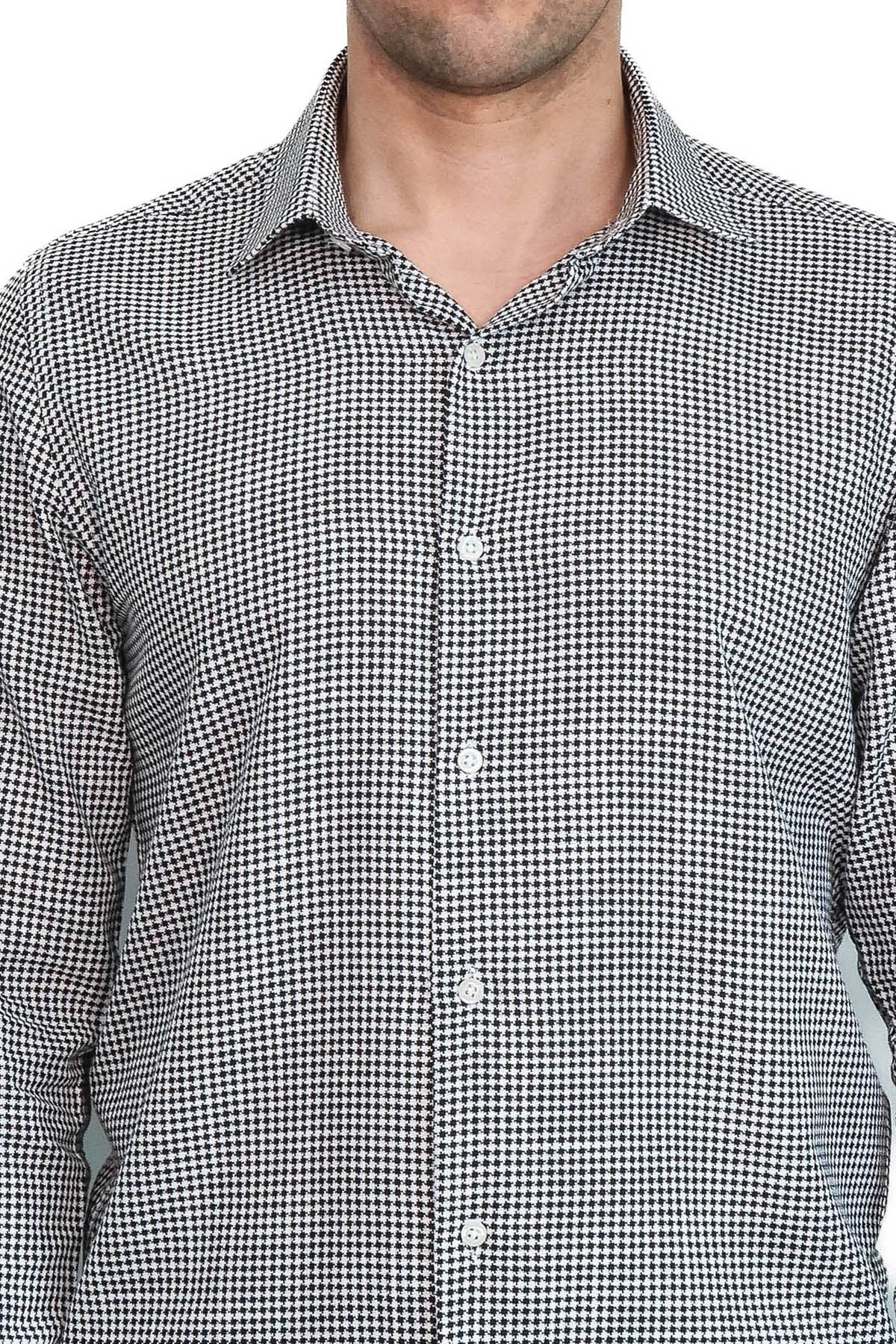 Upgrade your wardrobe with the Houndstooth Pattern Black Men Shirt from Wessi. This stylish shirt features a classic houndstooth pattern, offering a timeless and sophisticated look. Made with high-quality materials, it ensures both comfort and durability. Perfect for formal or casual occasions, this shirt is a must-have for the modern man.