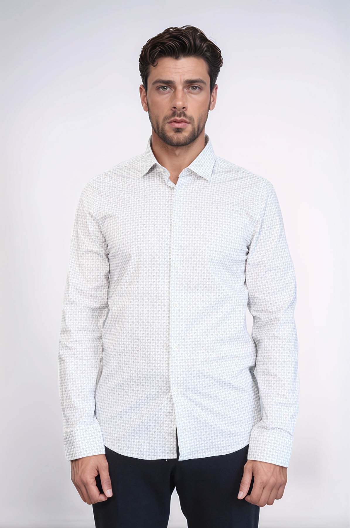 Men's shirts are the perfect combination of elegance and comfort. Available in different cuts, colors and patterns, these shirts enrich your wardrobe by offering options for every style and every occasion. Combining elegance and refinement, our men's shirt collection offers options tailored to your style. This shirt is an ideal choice for men looking for an elegant and modern look. Its ecru color adds elegance to you by harmonizing with all kinds of combinations. With its slim fit cut, this shirt fits your body perfectly and will make you feel as if it was specially designed for you. The goose foot pattern adds movement and character to the shirt. This pattern moves away from the classic and adds a different dimension to your style. The long sleeve design helps you stay stylish in cold weather or at special events. You can easily wear this shirt at work, special events or in your daily life. Pair it with a stylish blazer for a formal look or pair it with chino pants for a more casual style. With its quality fabric and carefully crafted details, this shirt is a candidate to be one of the indispensable pieces of your wardrobe.