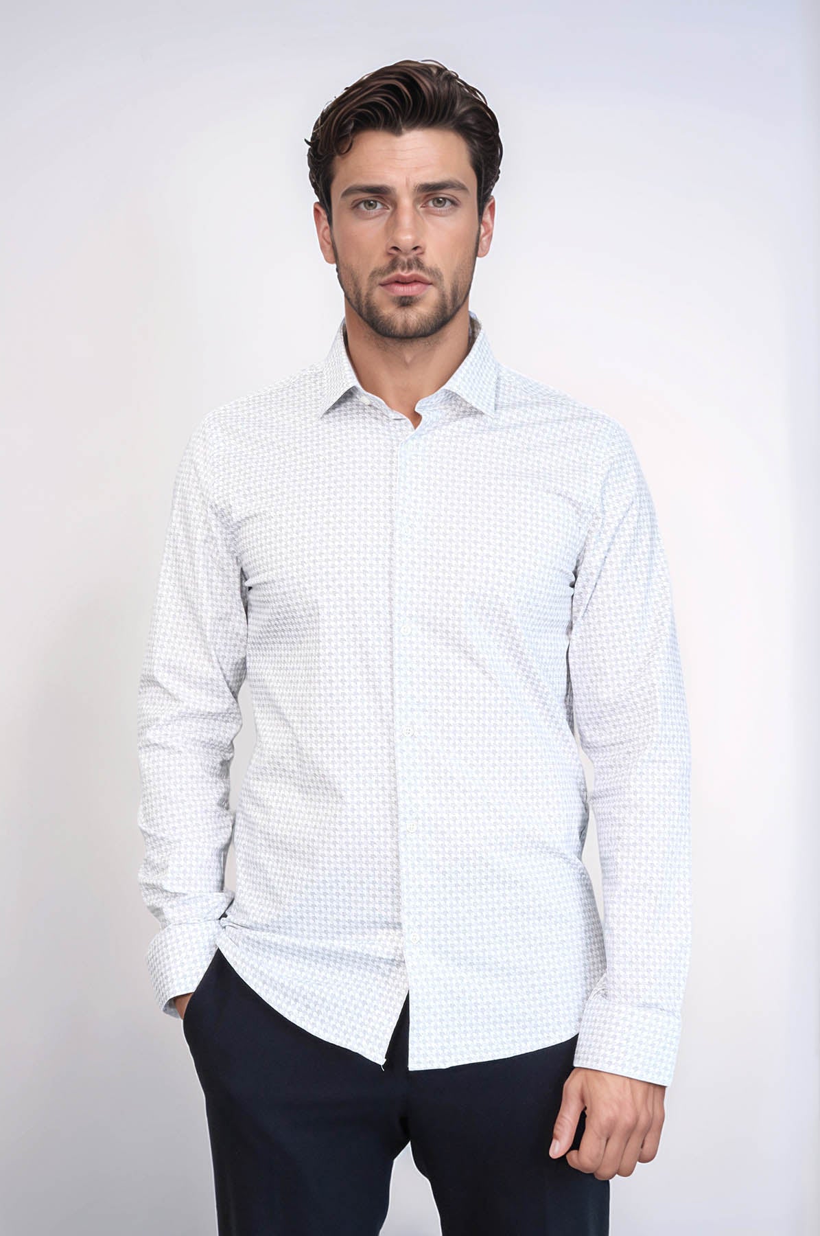 We offer a special option for your elegant and modern style. This shirt combines the nobility of white with the elegance of the crow's feet pattern for an eye-catching look. The slim and slim fit cut perfectly fits your body and emphasizes your elegance. Thanks to its long sleeve design, you can easily choose it in cold weather. The goose foot pattern adds a unique character to the shirt and offers a style that differs from the classic white shirt. This shirt is perfect for all kinds of events, from business meetings to special events. The white color goes well with any outfit, giving you a versatile clothing option. Wear it under a suit for a formal style or pair it with jeans for a more casual look. With its quality fabric and carefully crafted details, this shirt is a candidate to become a staple piece of your wardrobe. Stay true to your style and combine the noble and simple beauty of white with elegance.