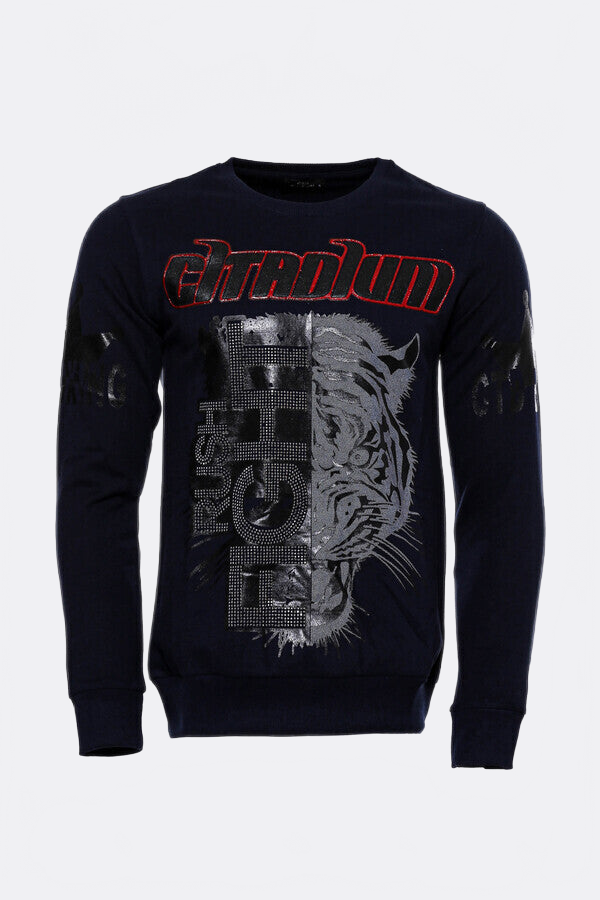 Navy Blue Patterned Slim Fit Sweatshirt - Wessi