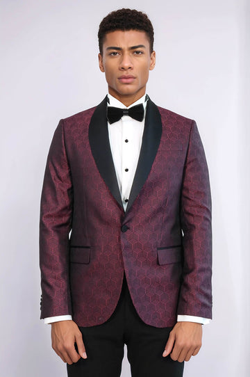 Pentagon Patterned Shawl Lapel Burgundy Men Prom Blazer - Wessi