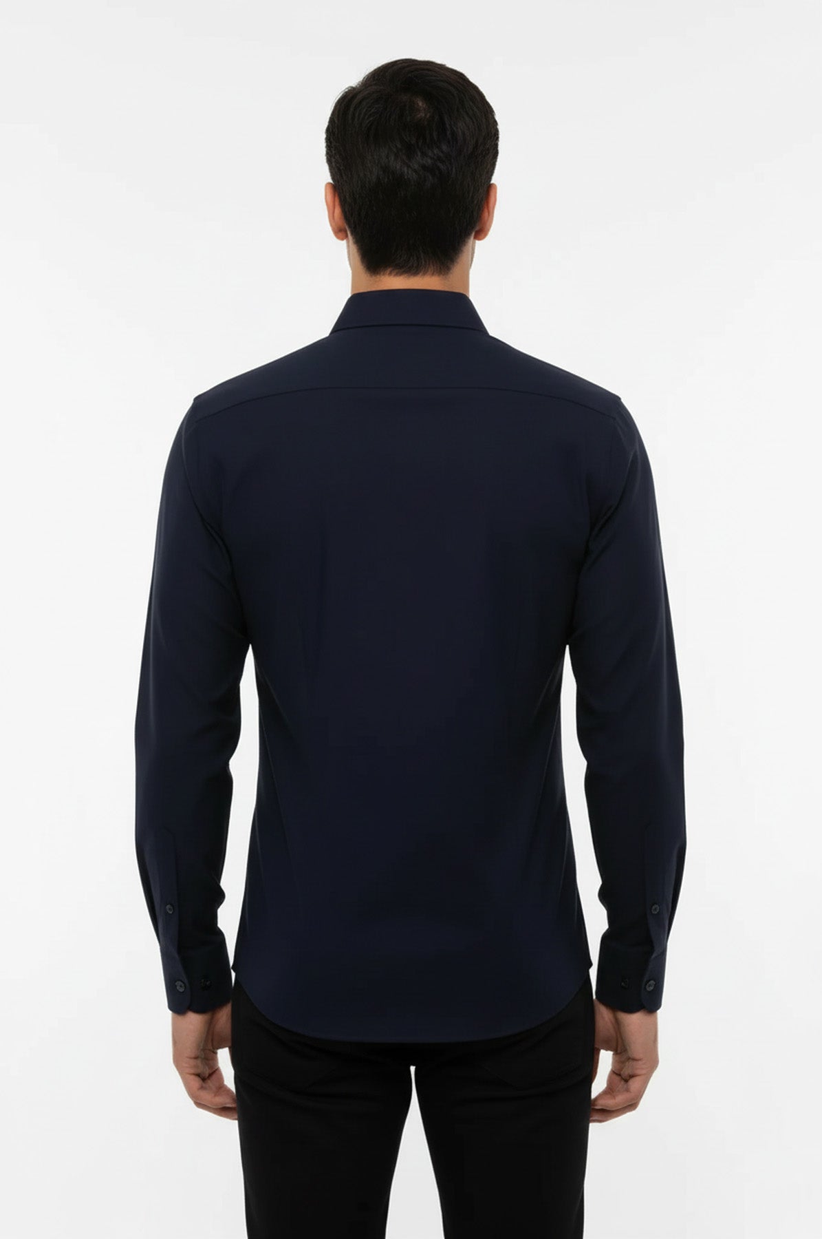 Plain Long Sleeves Regular Fit Navy Blue Men Shirt - Wessi