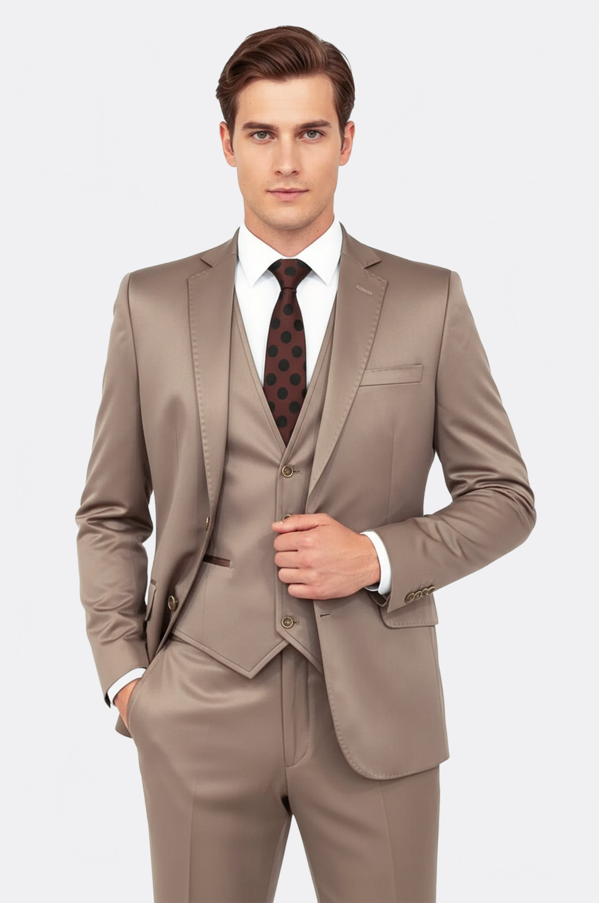 Plain Vested Light Brown Men Suit - Wessi