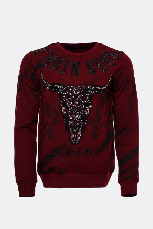 Slim Fit Patterned Burgundy Sweatshirt - Wessi