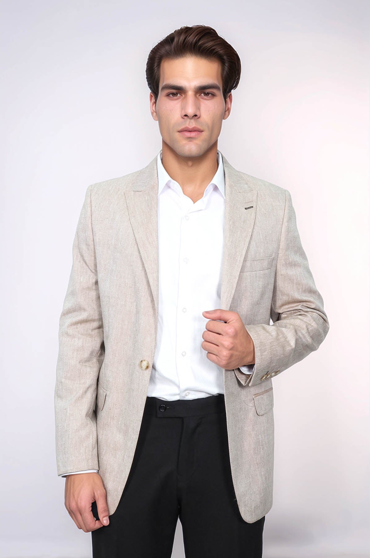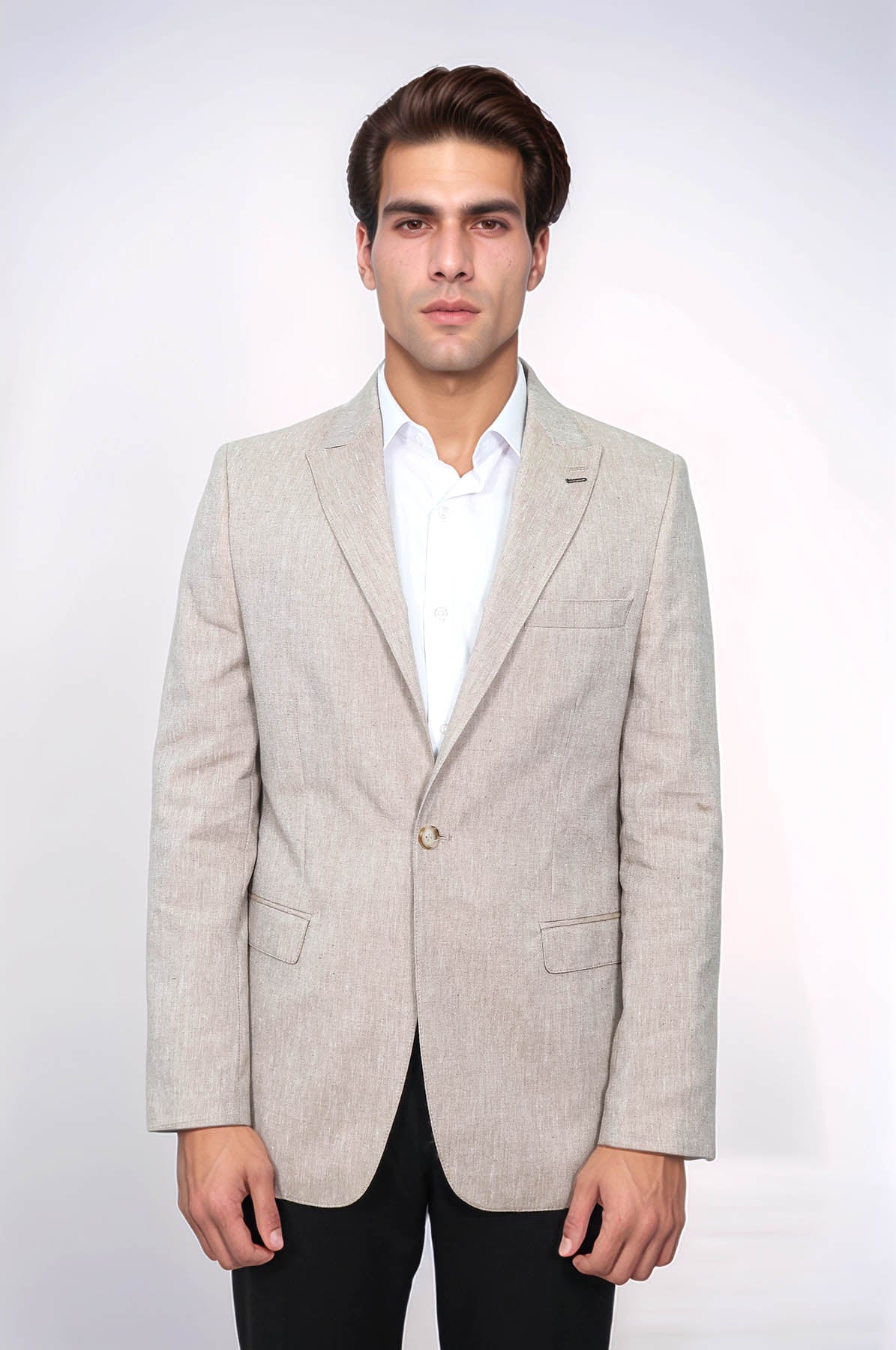 Slim-Fit Peak Lapel Light Brown Jacket - Wessi