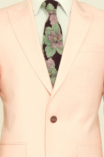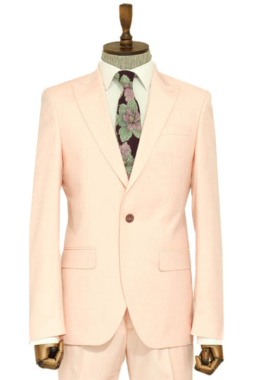 Two Piece Slim Fit Single Button Peach Colour Men Suit - Wessi