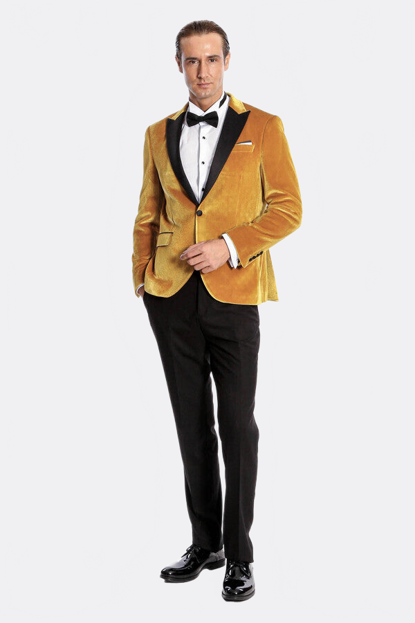 Velvet Slim Fit Yellow Men Prom Blazer - Wessi