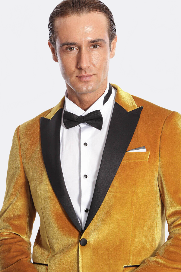 This season it's all about the modern men velvet blazer outfit! Velvet blazers are no longer just for formal events; they're now making a stylish statement at any type of gathering. Whether you’re looking to impress at your friend’s wedding or make an entrance at that company party, we've got you covered with our top picks for men velvet blazer outfits. For a special night out, nothing says sophistication like our yellow velvet slim fit blazer. The peak lapel, single button design is designed to make an impact at your graduation party or wedding. Whether it's for prom, a night event or any special occasion this high-quality blazer will make you look effortlessly stylish and fashion forward! You'll be sure to turn heads when you show up in this classic cut that exudes the perfect balance of modern and timeless style.