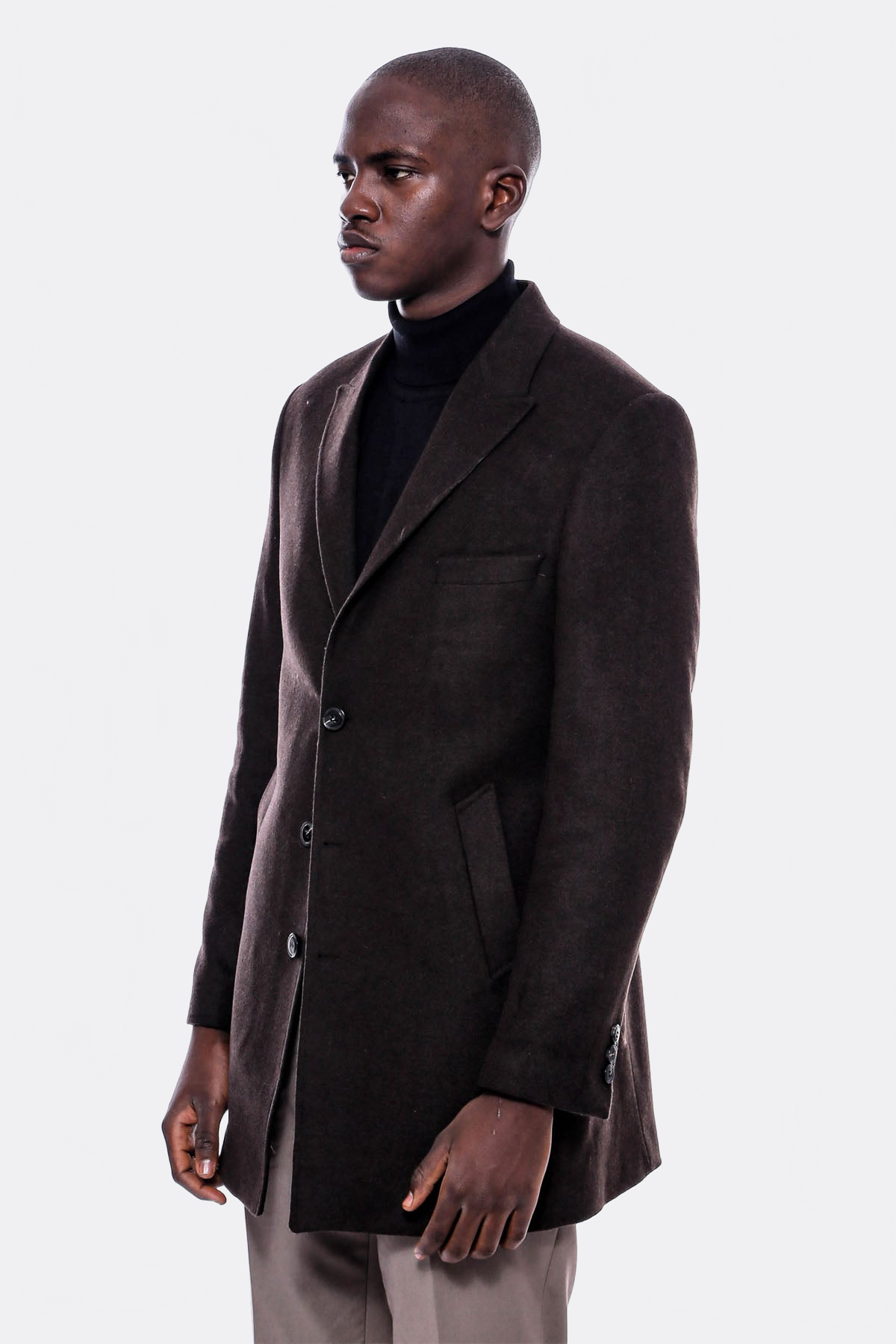 Brown cachet coat can easily adapt to winter with its color and fabric. The product has three buttons and a wide collar. It can easily adapt to different combinations with its wide collars. The product is available in nine different colors. With its coat quality that can be easily adapted to different styles, it will hide itself in your wardrobe as it was the first day for many years. With a wide color scale, the consumer will be able to shop easily. The product shows the user's physique quite well thanks to its slim fit feature.