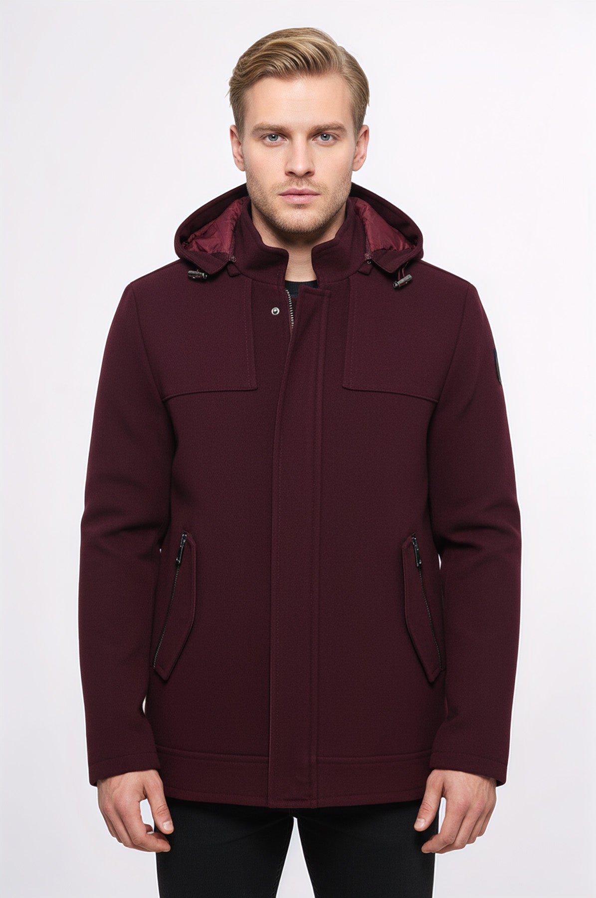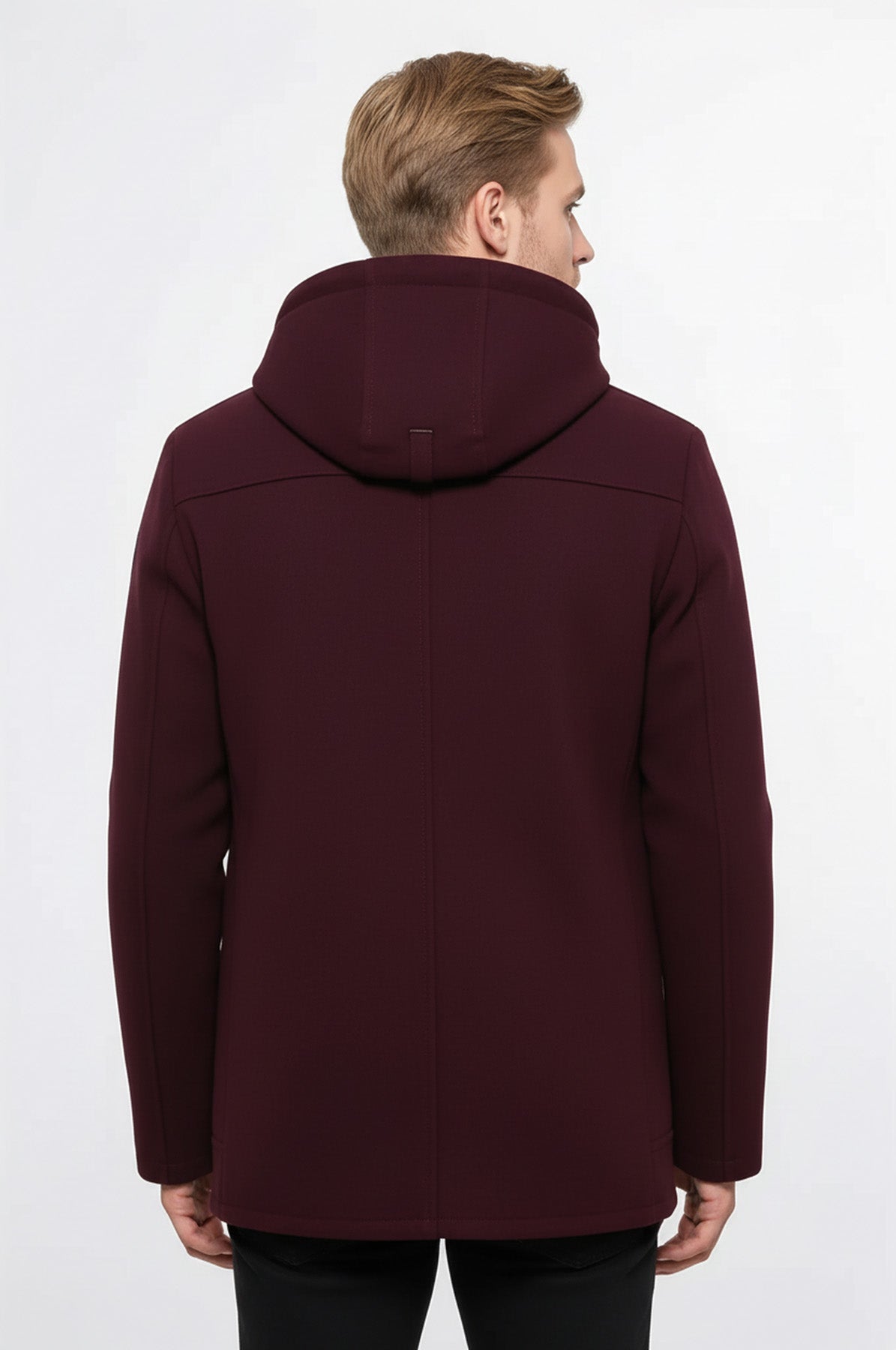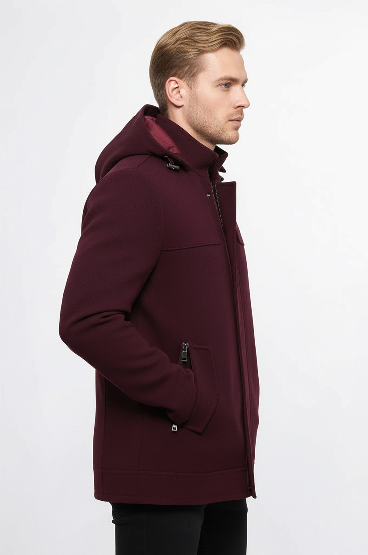 Zippered Sleeve Hooded Burgundy Coat - Wessi