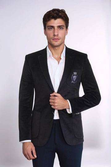 2 Düğmeli Cep Piping Kadife Gri Ceket