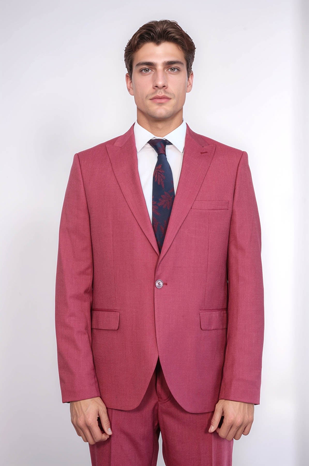 Erkek modası daha cesur ve daha parlak hale geliyor ve stilinizi sergilemenin mükemmel yolu bu desenli fuşya takımdır. Parlak, dikkat çekici bir fuşya takım elbise, odaya girdiğinizde tüm gözlerin üzerinizde olmasını sağlayacaktır. Bu trend sadece rahat değil, aynı zamanda aksesuarlarla kombinlemesi de kolay. Erkekler için en sevdiğimiz görünümlerden biri, bu desenli fuşya takım elbiseyi klasik siyah loafer'lar ve daha açık bir fuşya tonunda bir gömlekle birleştirmektir; bu, zamansız bir görünümde beklenmedik bir dokunuş sağlar. Güneş gözlüğü veya şapka gibi aksesuarlar eklemekten çekinmeyin, böylece daha fazla şıklık katabilirsiniz! Kokteyl partilerinden düğünlere kadar her türlü etkinlikte, desenli fuşya takımları erkeklerin kalabalığın arasından sıyrılmasının mükemmel yoludur.