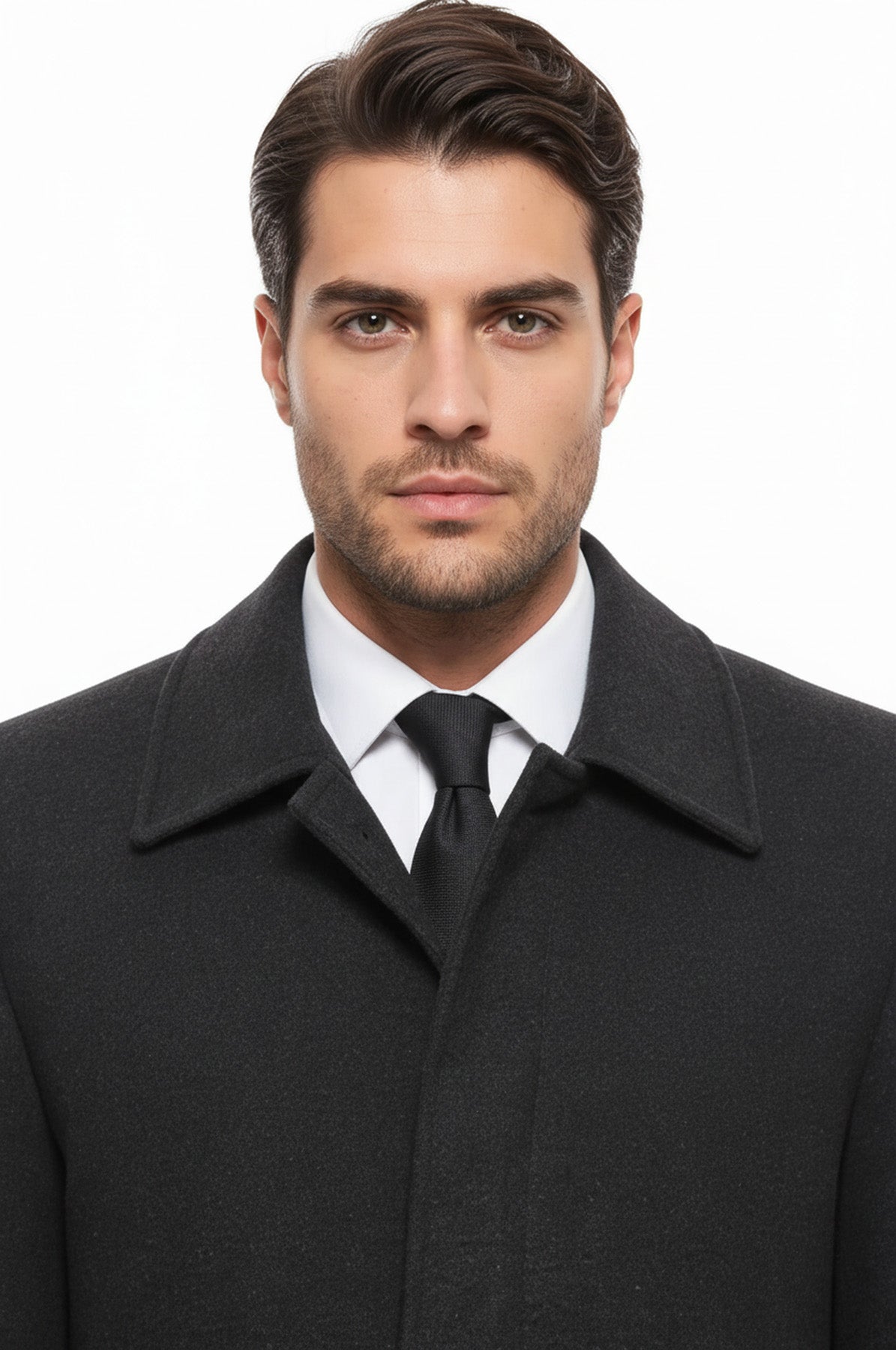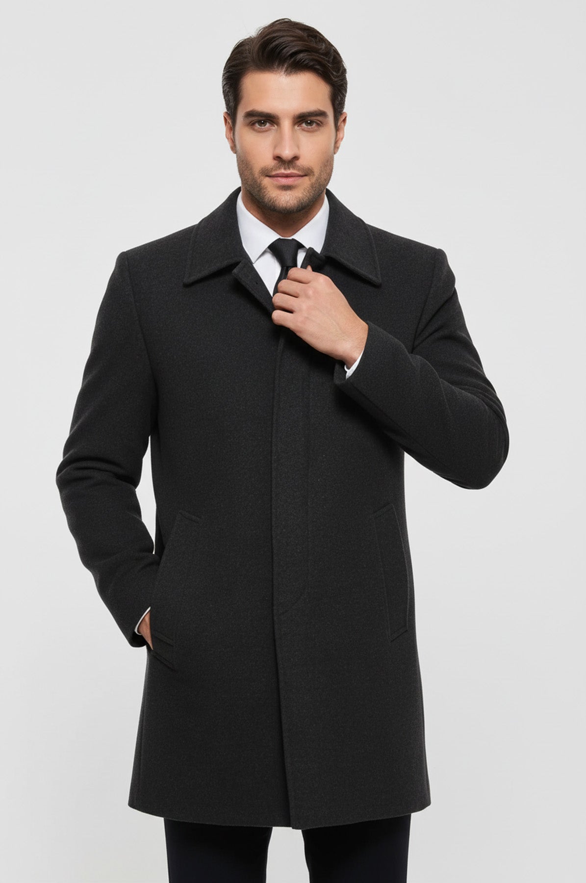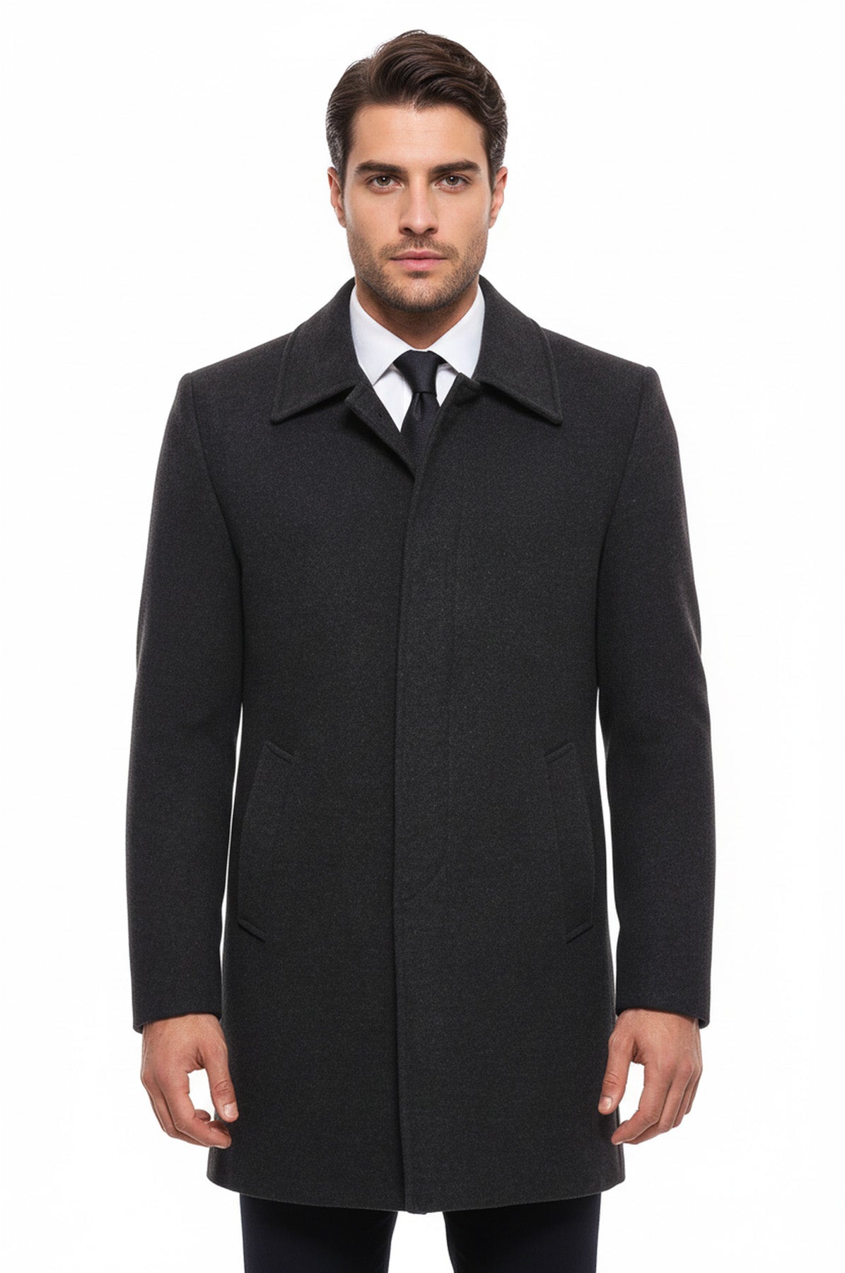 Antrasit Gizli Düğmeli Piko Yaka Palto - Wessi
