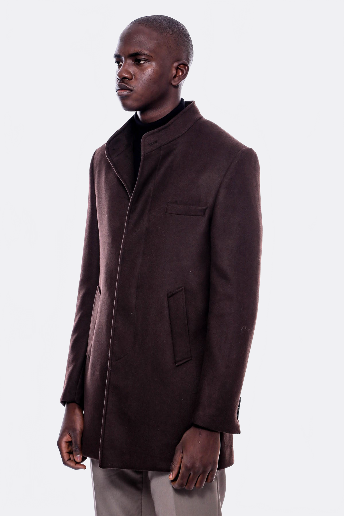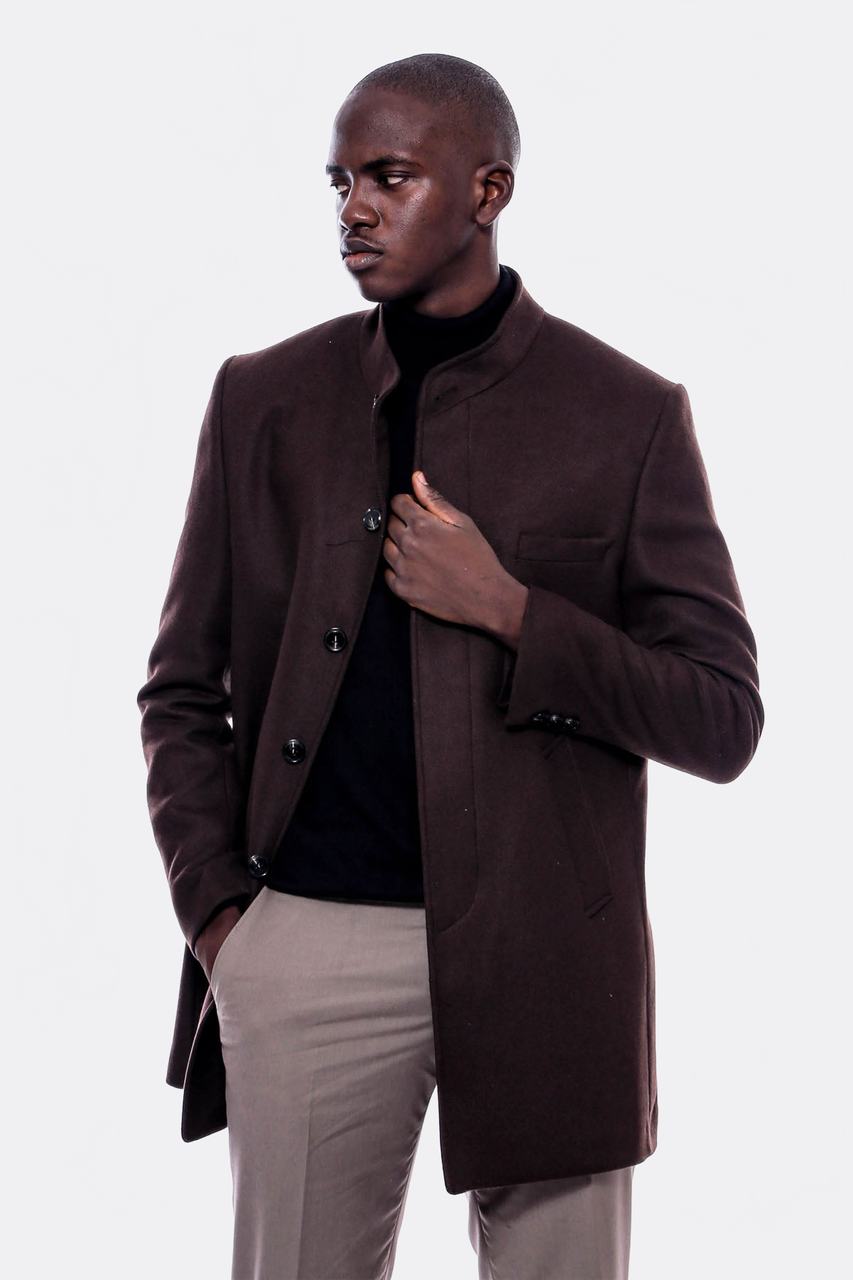 Mandarin Yaka Kahverengi Cachet Palto - Wessi