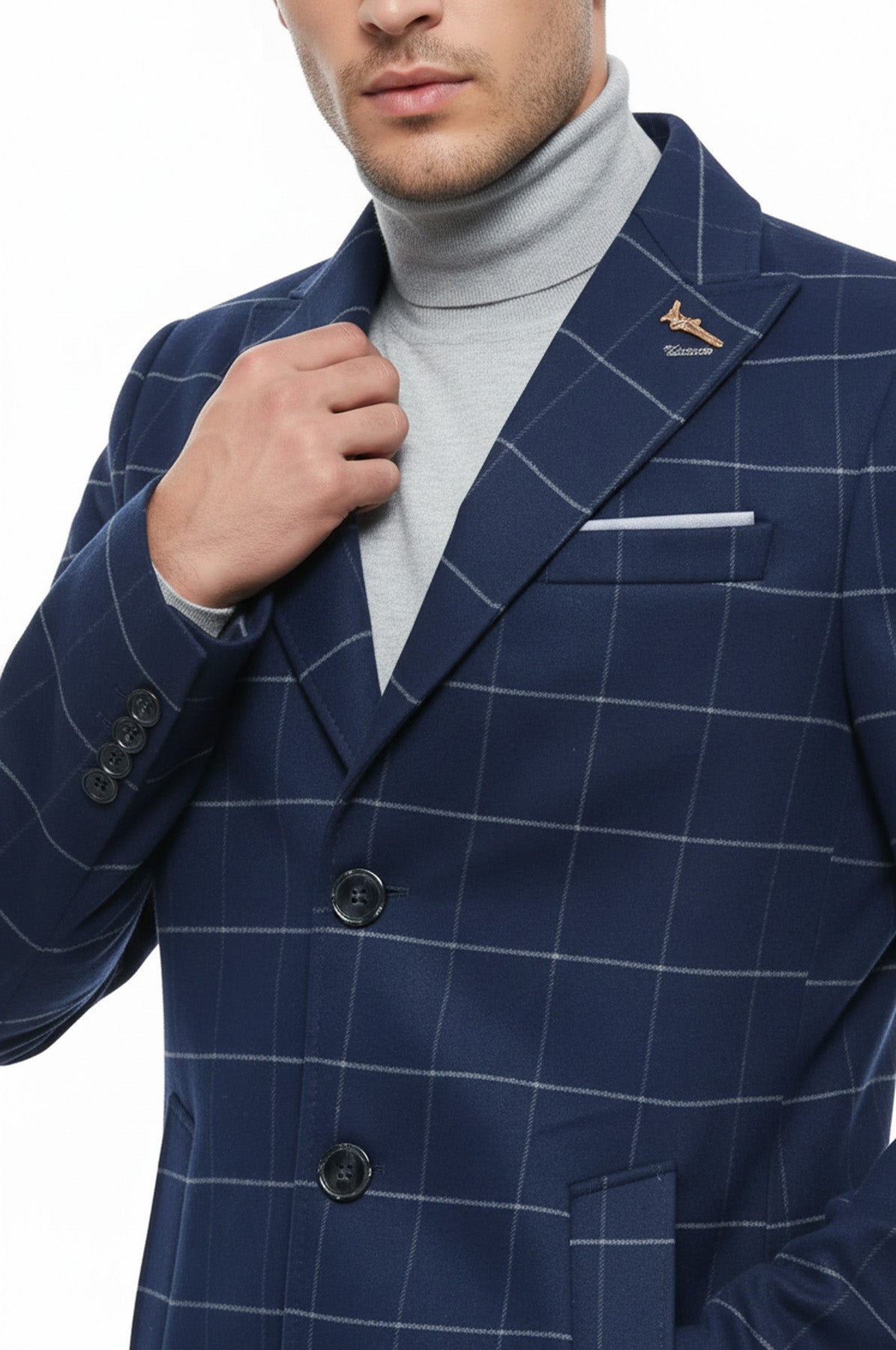 Geniş Uçlu Yaka İndigo Erkek Kaban - Wessi