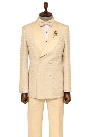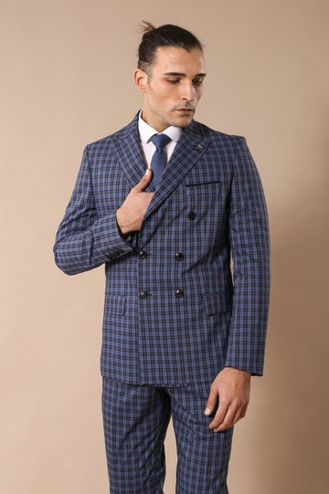 Çift düğmeli takım elbise zamansız bir klasiktir.