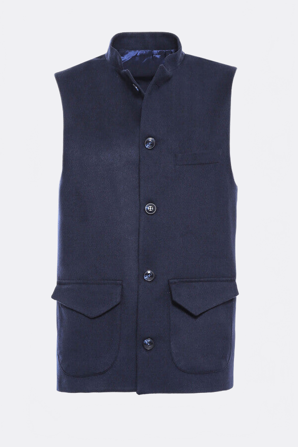 Lacivert Mandarin Yaka Yelek - Wessi