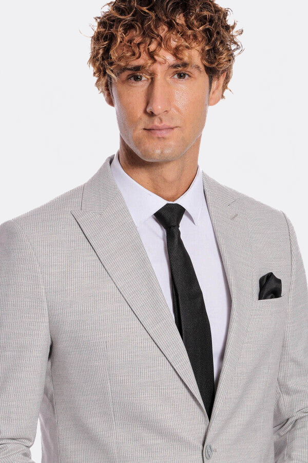 2 Parça Çizgili Gri Erkek Takım Elbise - Wessi