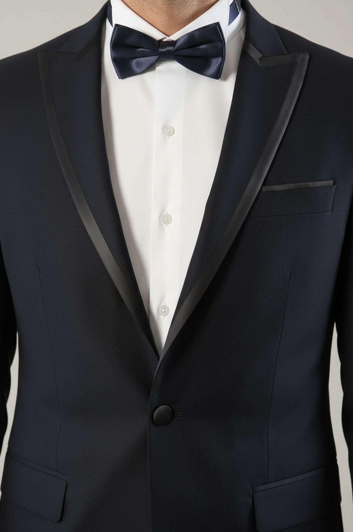 Çıkarılabilir Yaka Erkek Mavi Tuxedo Takım Elbise | Wessi