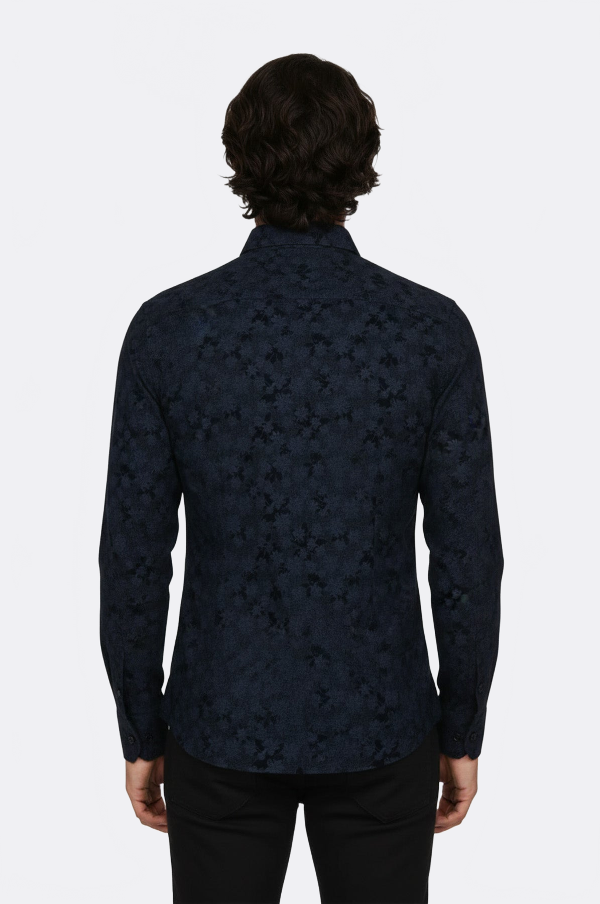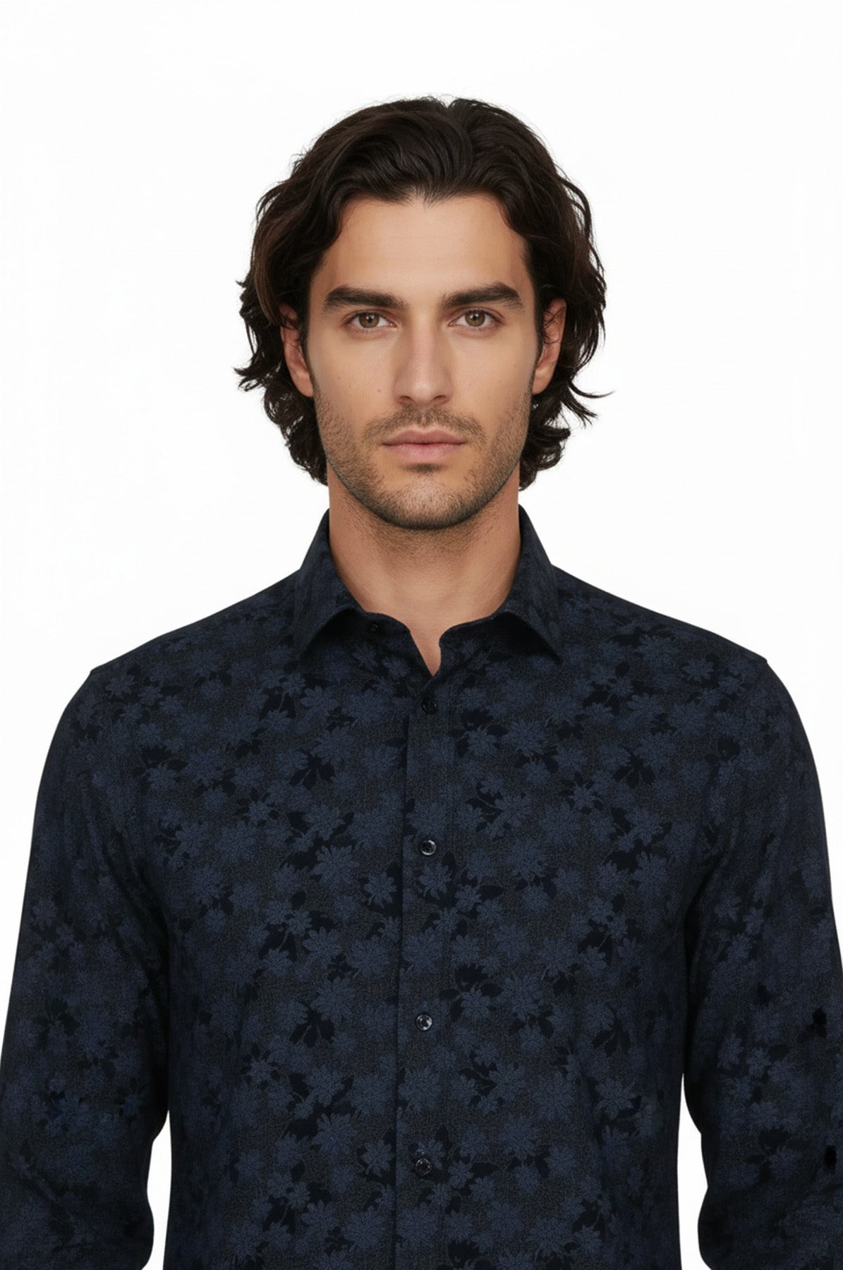Çiçek Desenli Koyu Mavi Slim Fir Gömlek - Wessi
