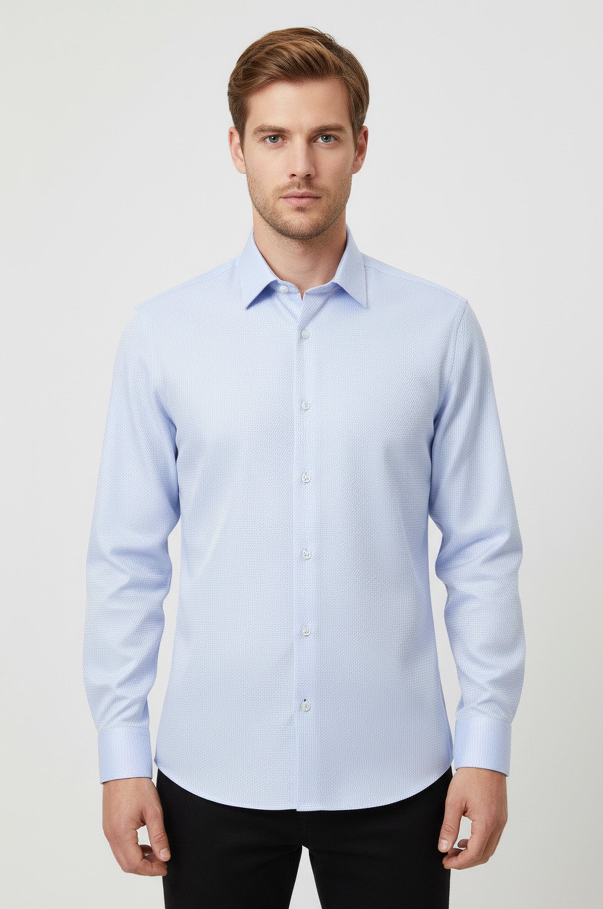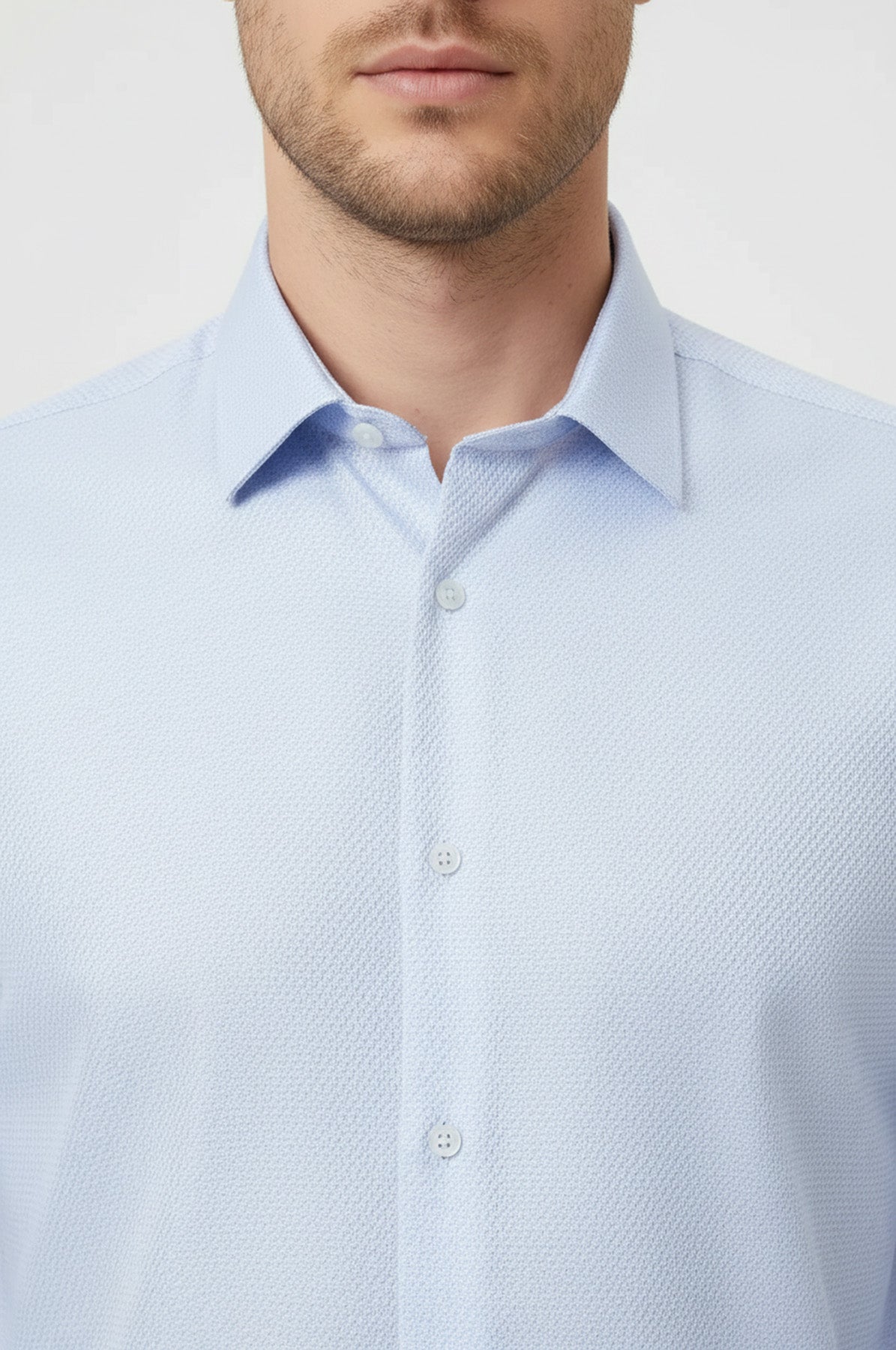 Nokta desenli, cepsiz, dar kesim, uzun kollu erkek gömleği, %100 pamuk kumaşla mavi renkte tasarlandı. Yaz ve kış demeden neredeyse her dönemin favori ürünlerinden biri olan buz mavi dar kesim modelimiz yanınızda. Desenleri özel olarak nokta nokta çalışılmış ve kendinden desenli olarak dikkat çekiyor. Dar bir kesime ve uzun kollara sahiptir. Neredeyse her kombinle birebir uyum sağlar. Cebi ve düğmesi olmamasına rağmen spor gömlek olarak kullanılabilir. Fit gömleğimizde ayrıca bir yaka detayı bulunmaktadır. Dikkat çekici ve şık tasarımı da dikkat çekicidir.