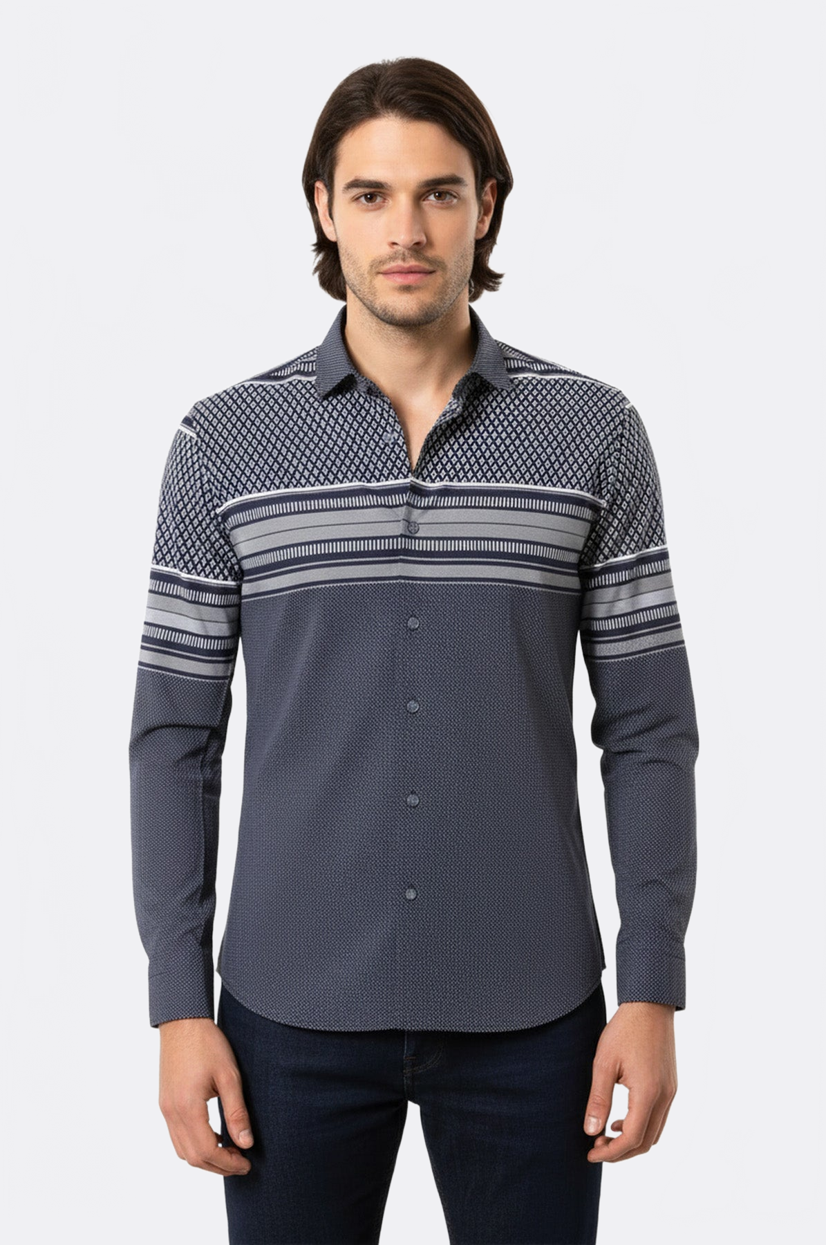 Navy mavi desenli erkek gömlek modeli, tek başına kombin olarak kullanılabilen, desenleri ve çizgileriyle günlük stillere hareket katan bir tasarımdır. Kot pantolonlarınızla günlük kombinlerinizde rahatlıkla kullanabileceğiniz bu model, slim fit kesimiyle vücudunuza oturacaktır. T-shirt tarzındaki model, çok kullanışlı bir kombin parçası olacaktır. Ekstra aksesuara ihtiyaç duymadan bahar yaz kombinlerinizde kullanılabilir. Konseptlerinizi gri veya navy mavi pantolonlarla tamamlayabilirsiniz. Aradığınız tüm ürünlere web sitemizden pratik bir şekilde ulaşabilirsiniz. Detaylı filtreleme özelliklerini kullanarak, aradığınız stil ve fiyat aralığındaki ürün seçimine çok hızlı bir şekilde ulaşabilirsiniz. Tüm alışverişlerinizde Wessi kalitesiyle en şık konseptleri oluşturabilir ve her sezon en uygun fiyat avantajlarıyla keyifli alışveriş yapabilirsiniz.