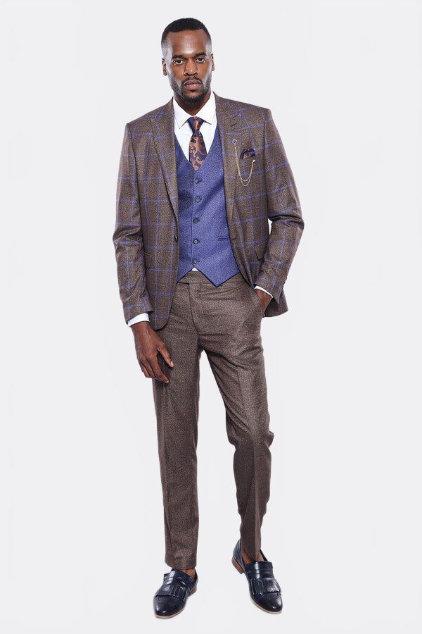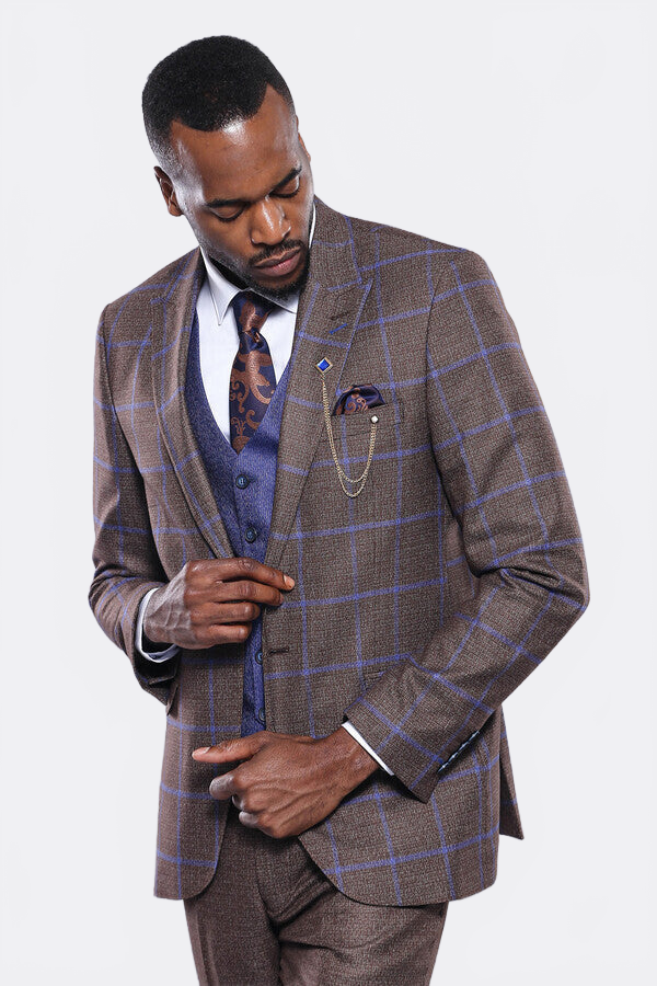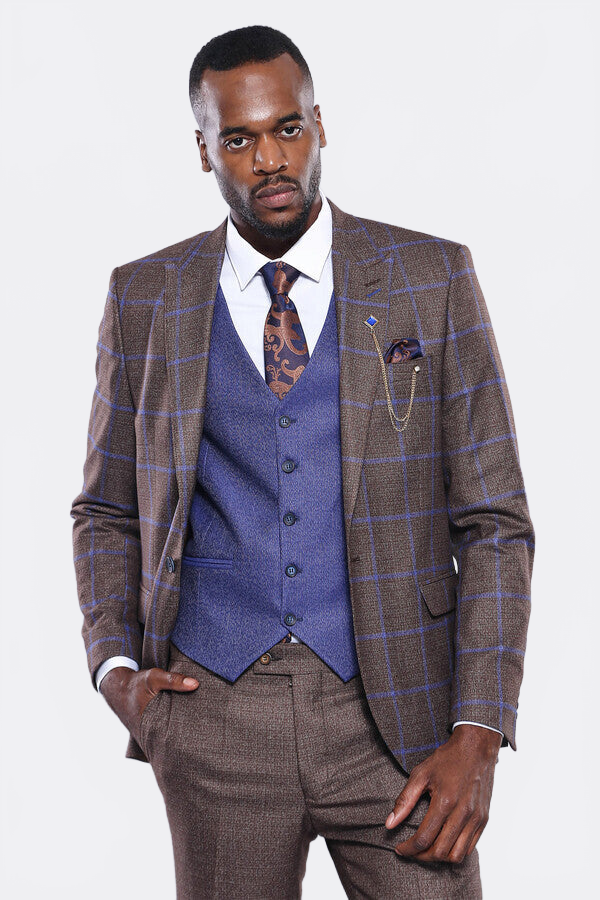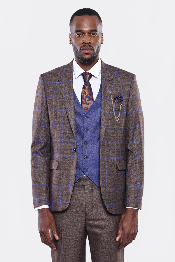 Kahverengi Mavi Kareli Takım Elbise | Wessi - Wessi